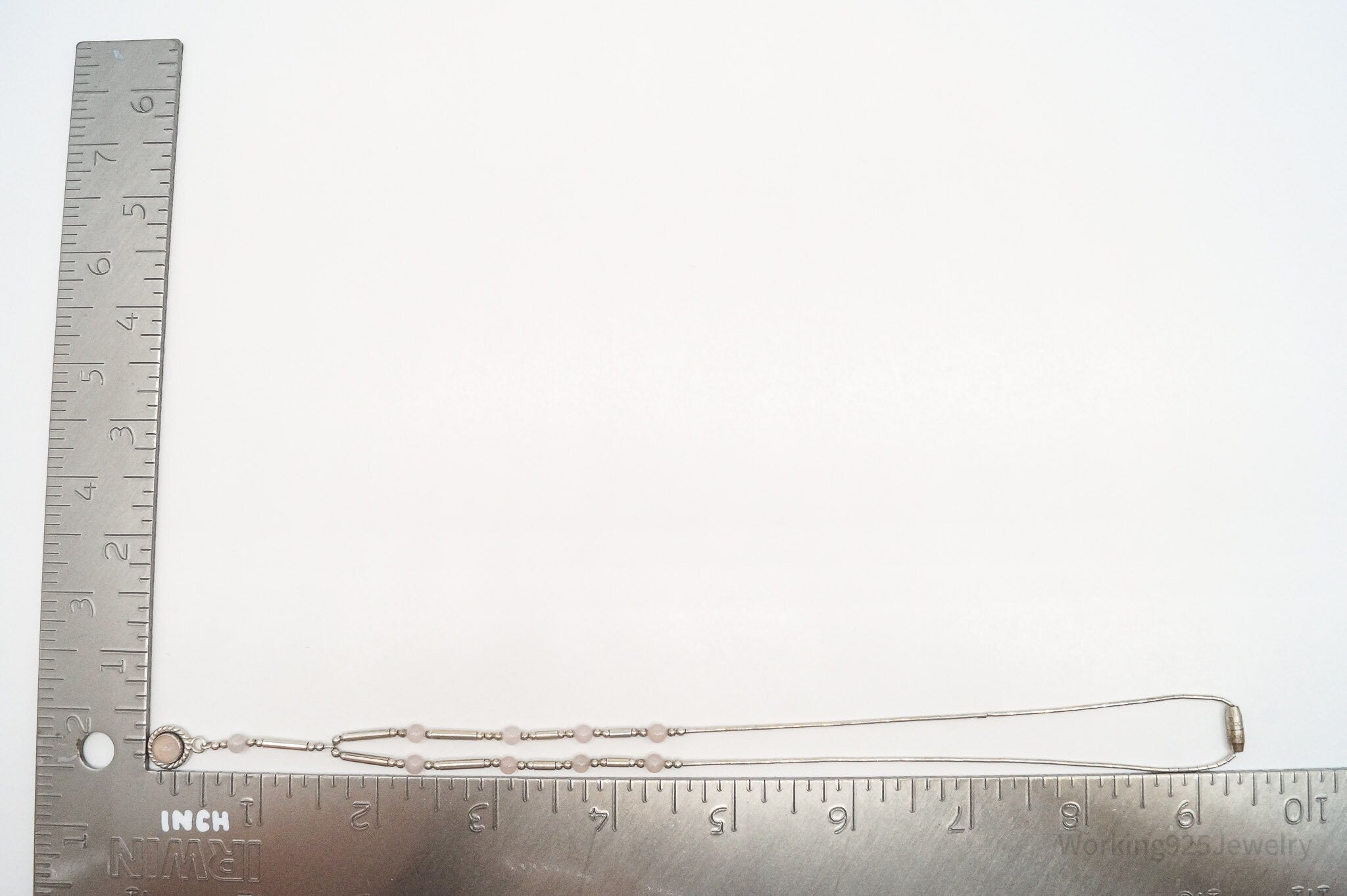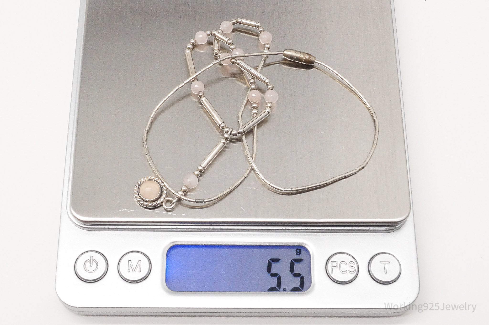 Vintage Western QT Inc Rose Quartz Sterling Silver Beaded Necklace 16"