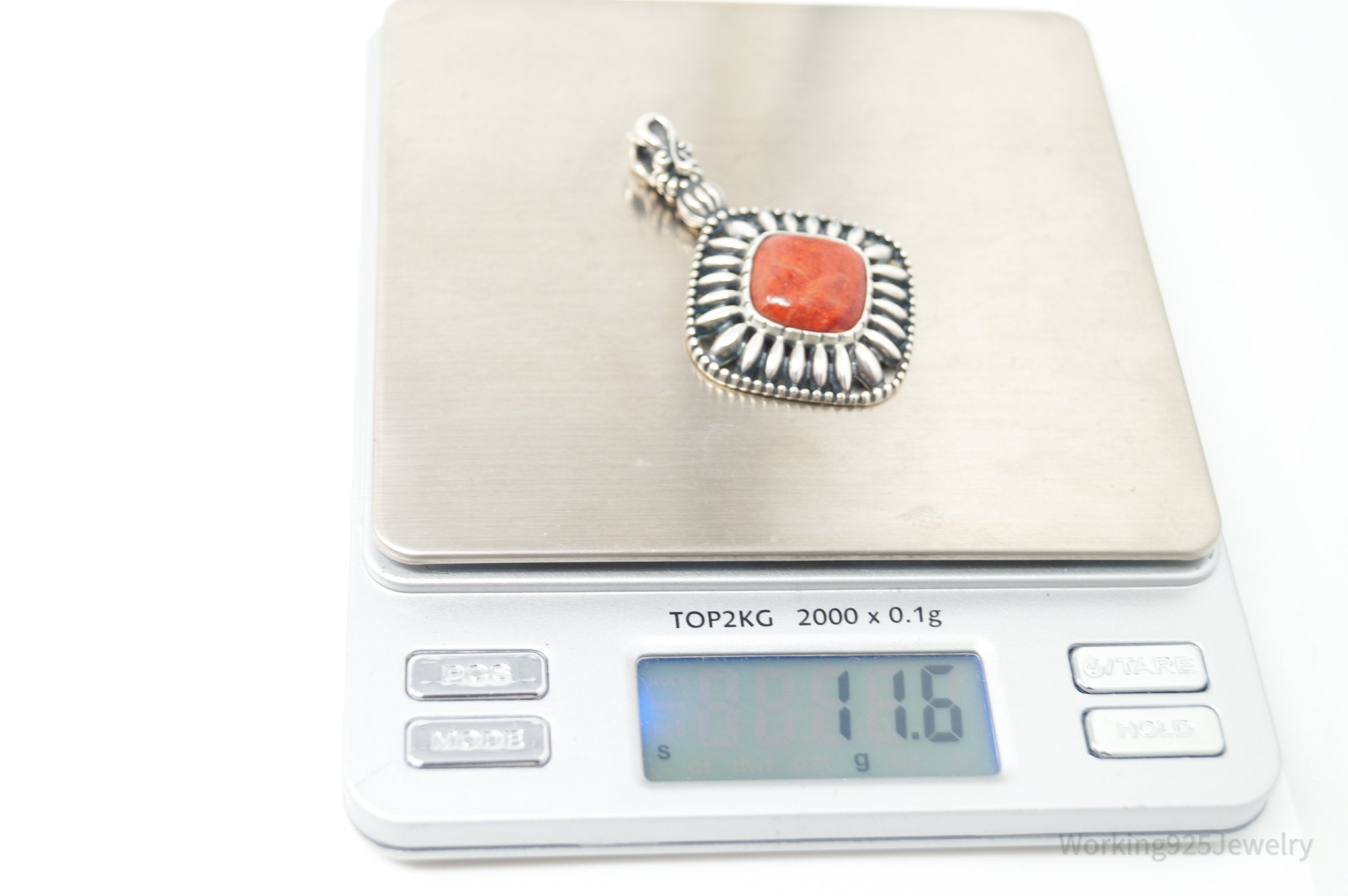 Vtg Carolyn Pollack Relios Raw Coral Flower Sterling Silver Necklace Pendant