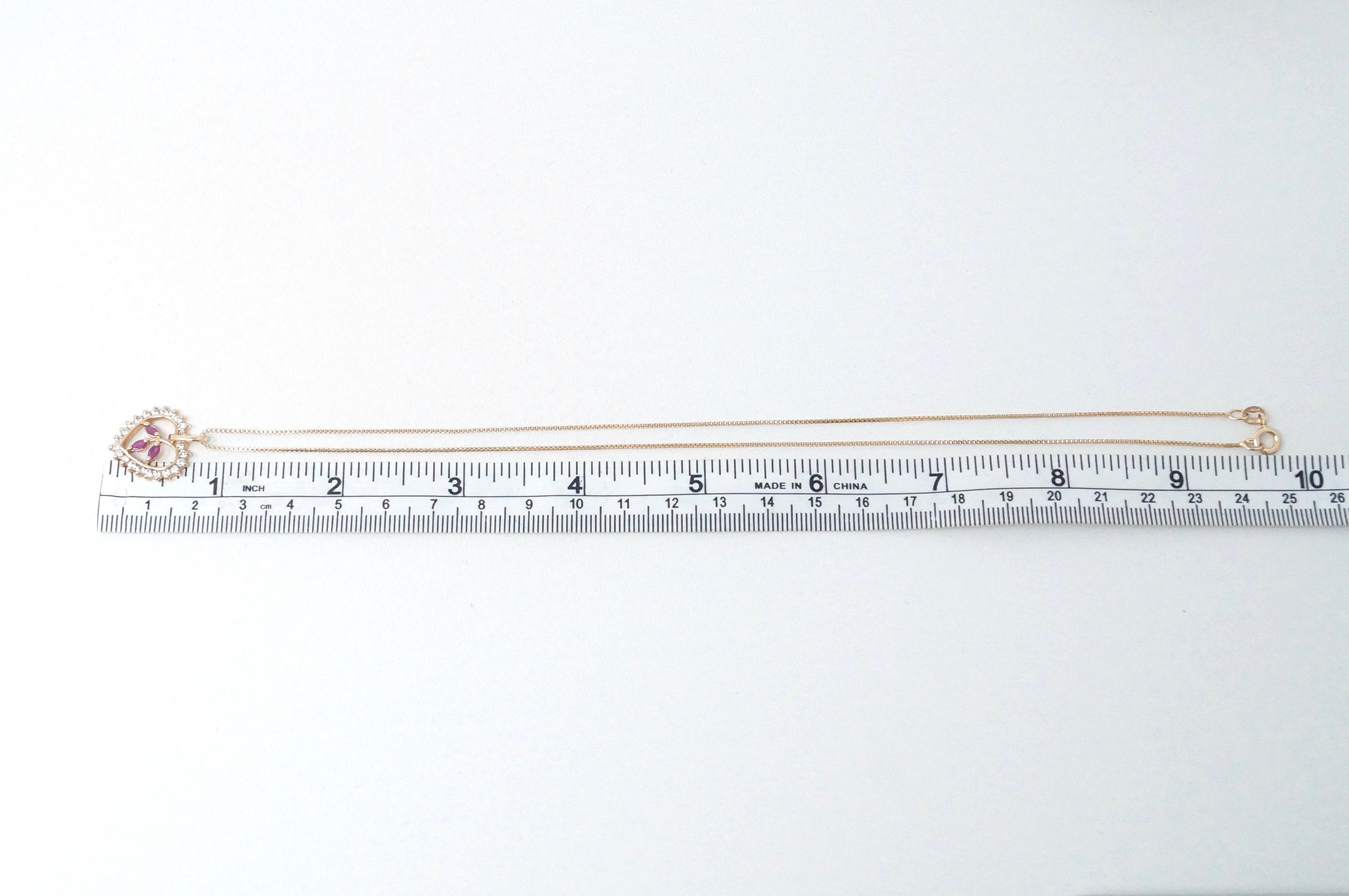 Vtg Ruby Simulated Heart Accented Rose Gold Vermeil Sterling Silver Necklace 18"