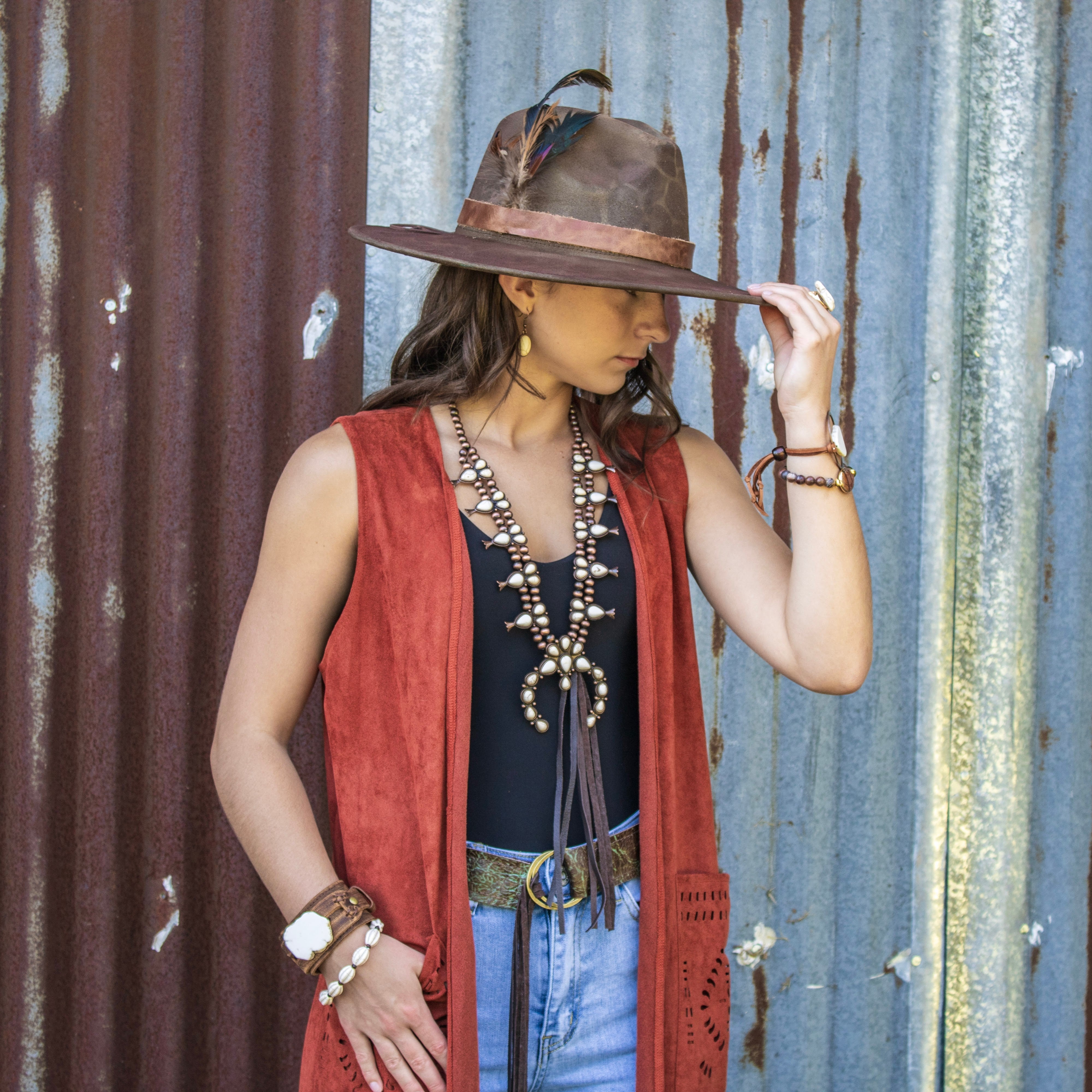 Embrace bold boho charm with this Turquoise Squash Blossom Necklace featuring a striking tassel and large Naja Pendant. Its classic western-inspired design pairs vibrant howlite turquoise stones with intricate silver detailing, making it a standout accessory for any outfit. Perfect for adding a touch of unique style and effortless flair, this necklace elevates your look with authentic Southwestern spirit.