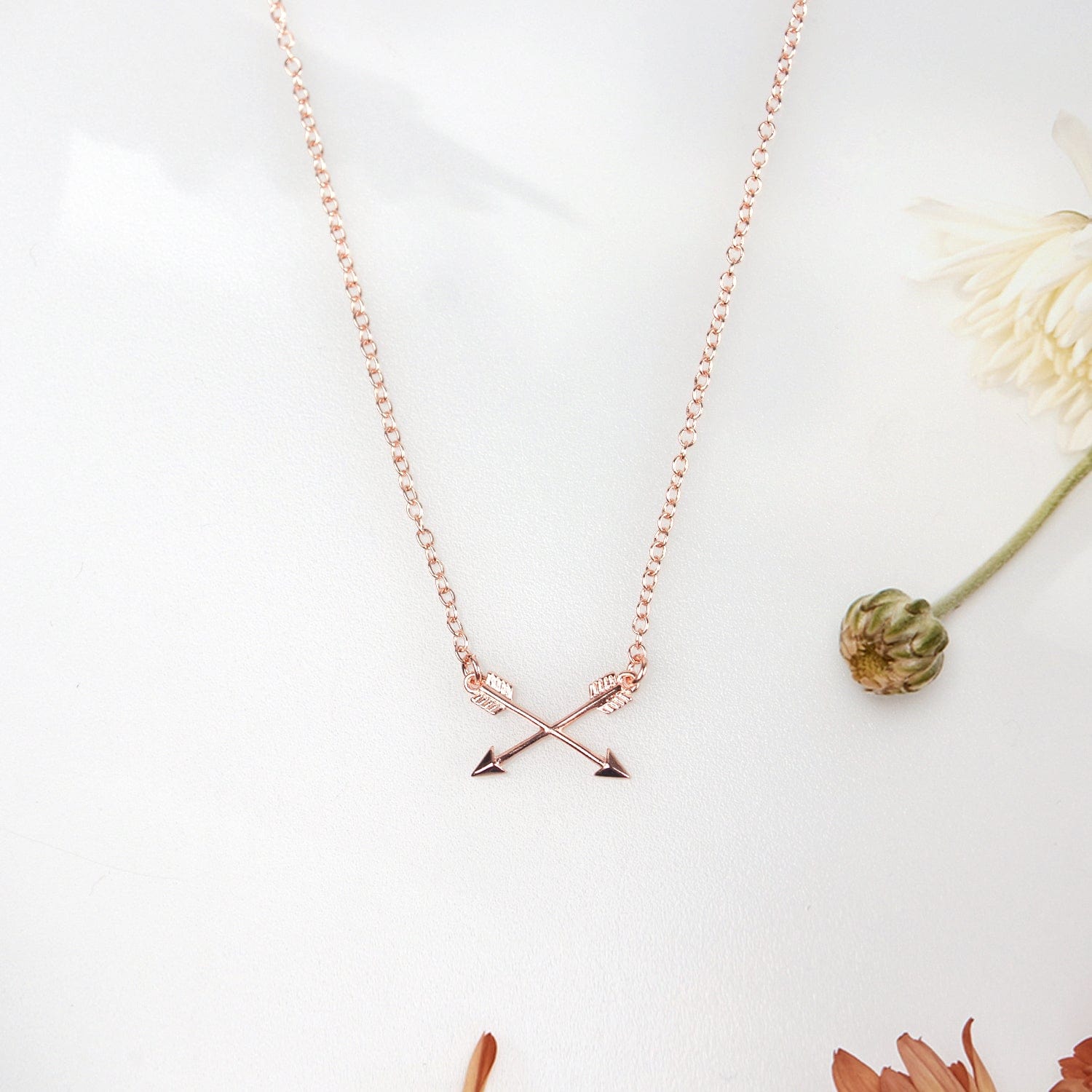Women Empowerment - Keep Slaying - Double Intersecting Arrows Necklace ‐ ROSE GOLD