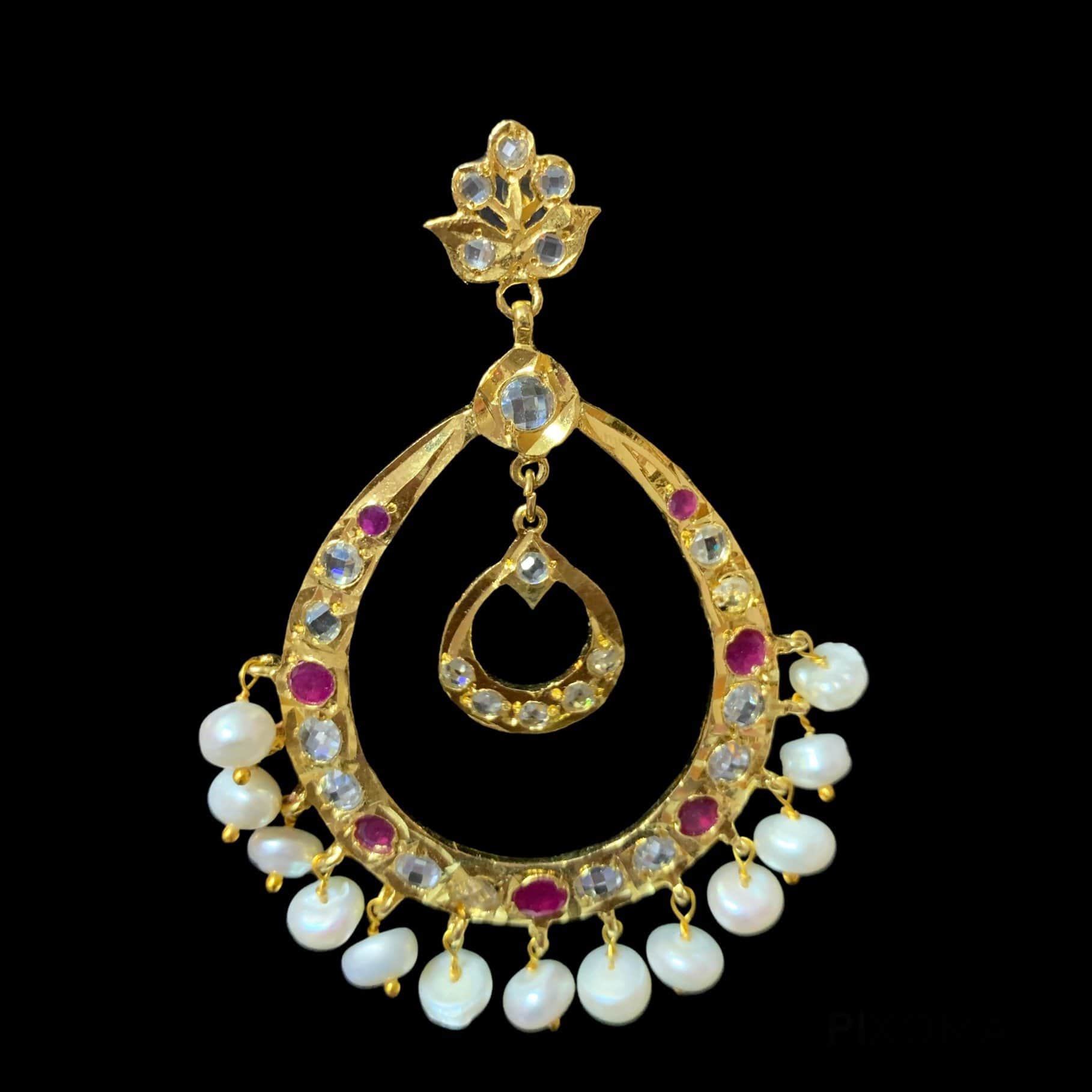 DER274 Chandbali in real pearls and rubies ( READY TO SHIP)