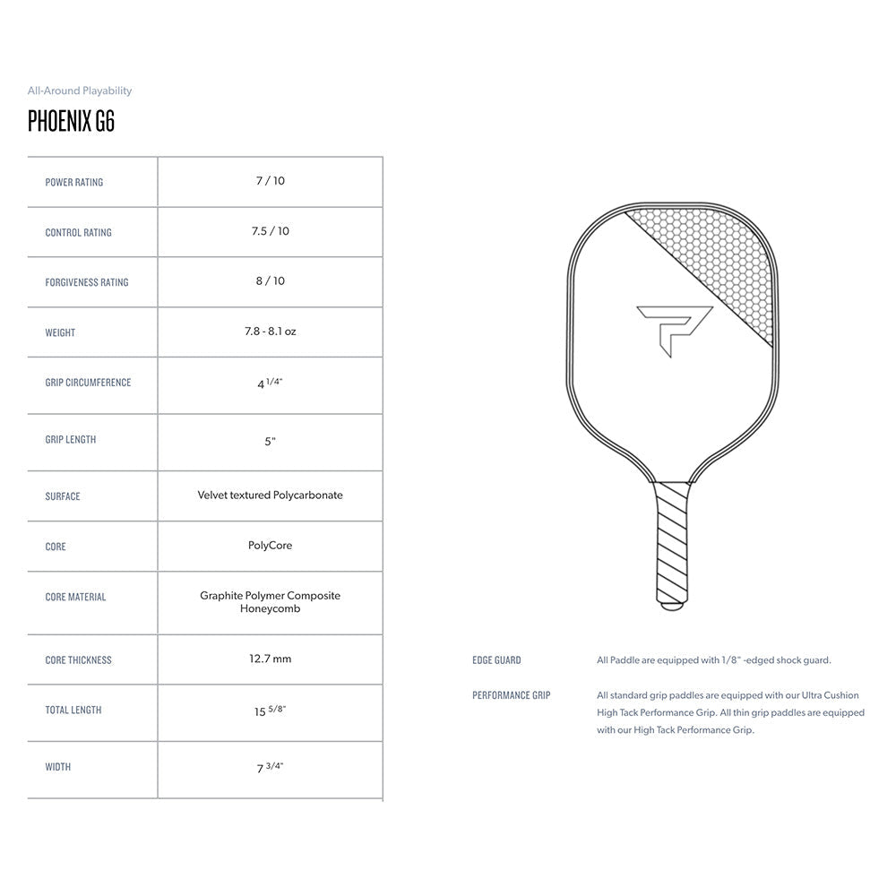 Paddletek Phoenix G6 Pickleball Paddle ‐ Heavy: 8.0-8.1oz / Horizon