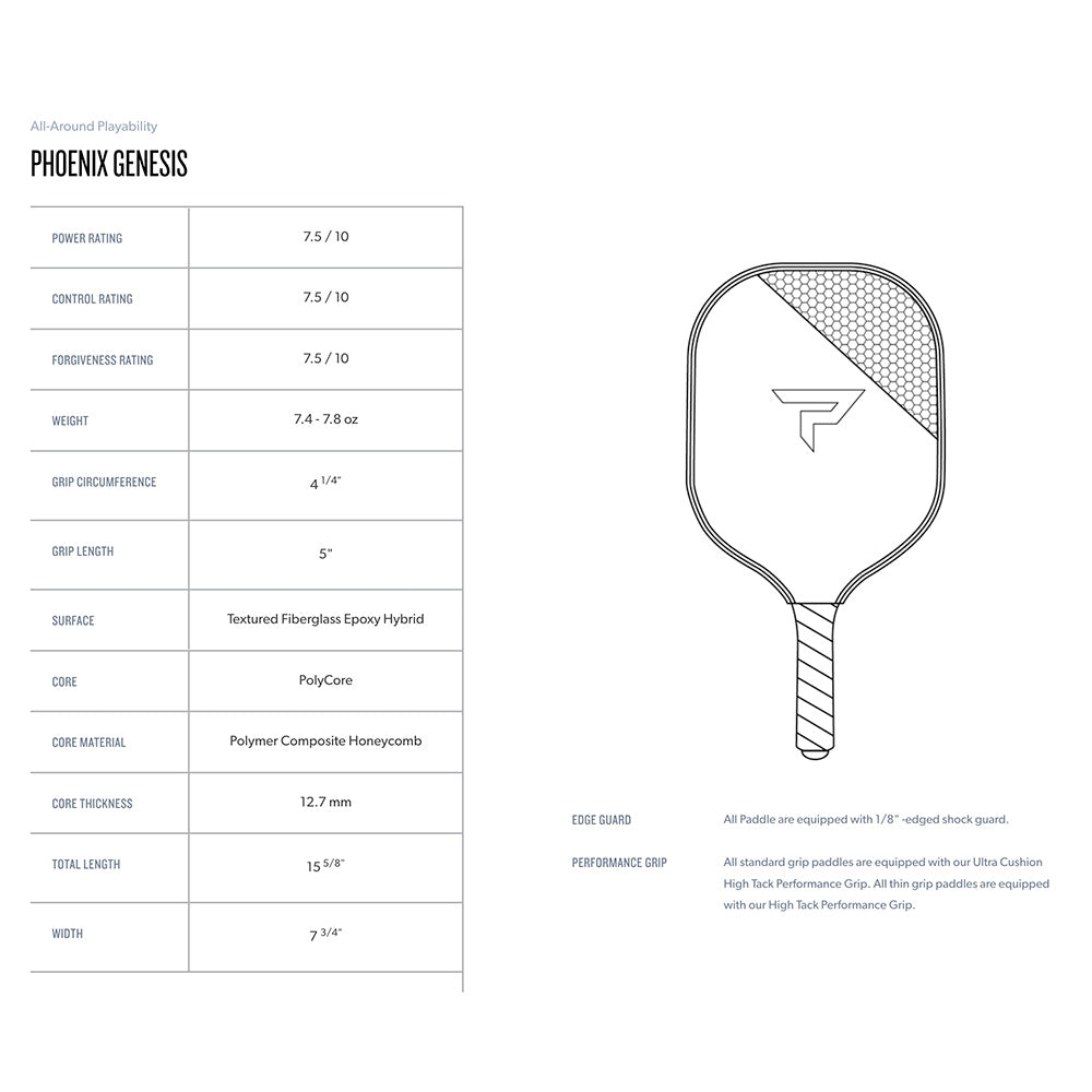 Paddletek Phoenix Genesis Leigh Waters Signature Pickleball Paddle ‐ Medium: 7.5-7.6oz