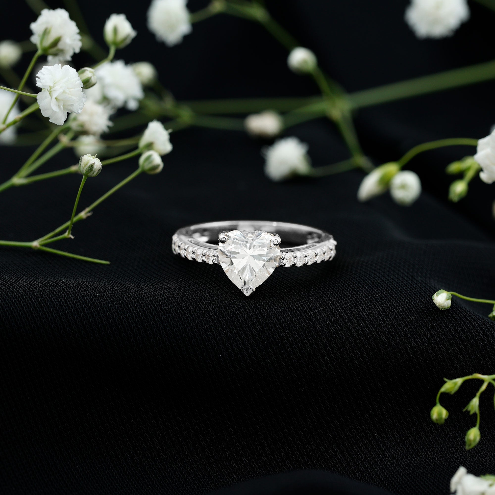 3 Prong Lab Grown Diamond Heart Engagement Ring For Women ‐ Lab - ( EF-VS ) / 14K White Gold / 5.75