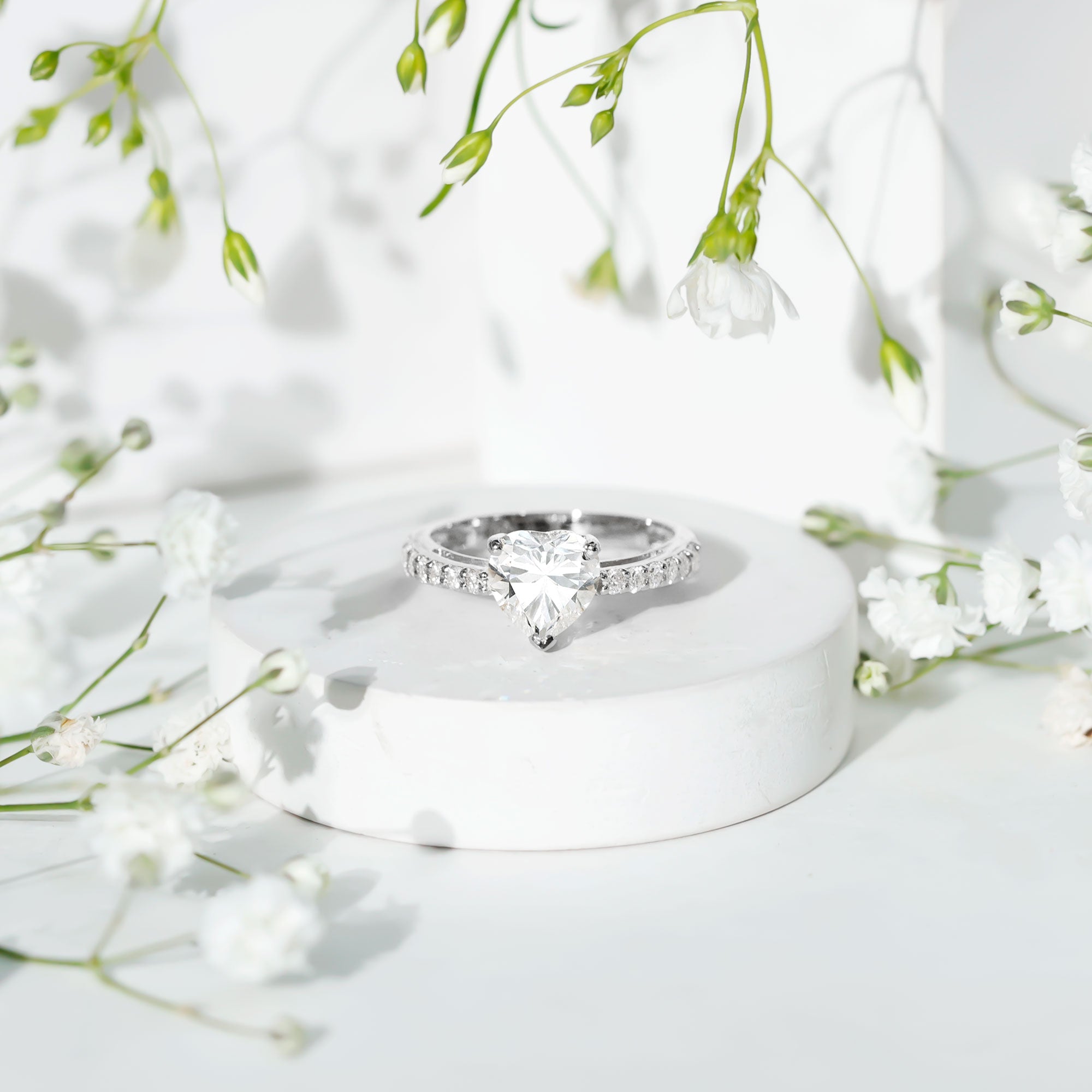 3 Prong Lab Grown Diamond Heart Engagement Ring For Women