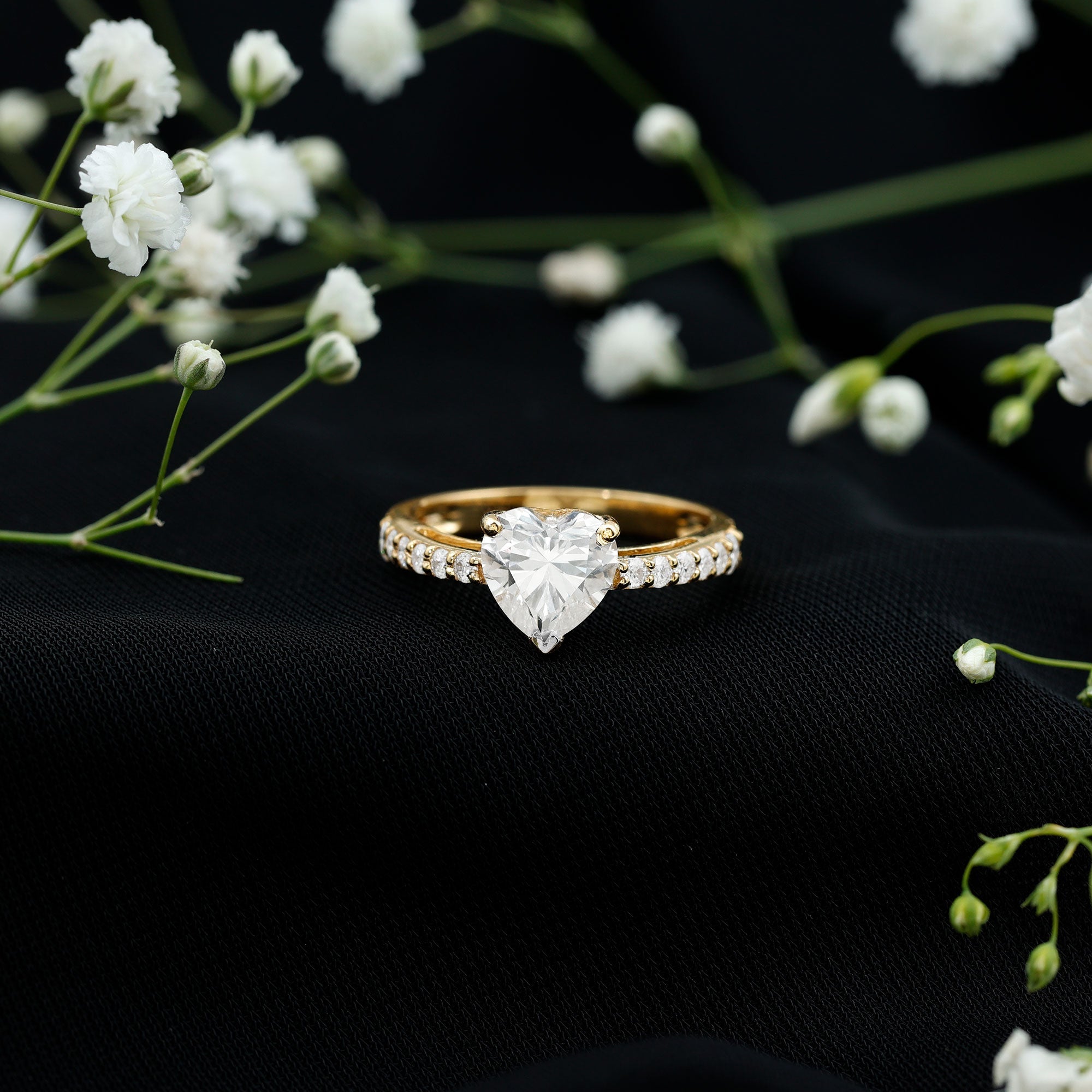 3 Prong Lab Grown Diamond Heart Engagement Ring For Women ‐ Lab - ( EF-VS ) / 18K Yellow Gold / 5.75