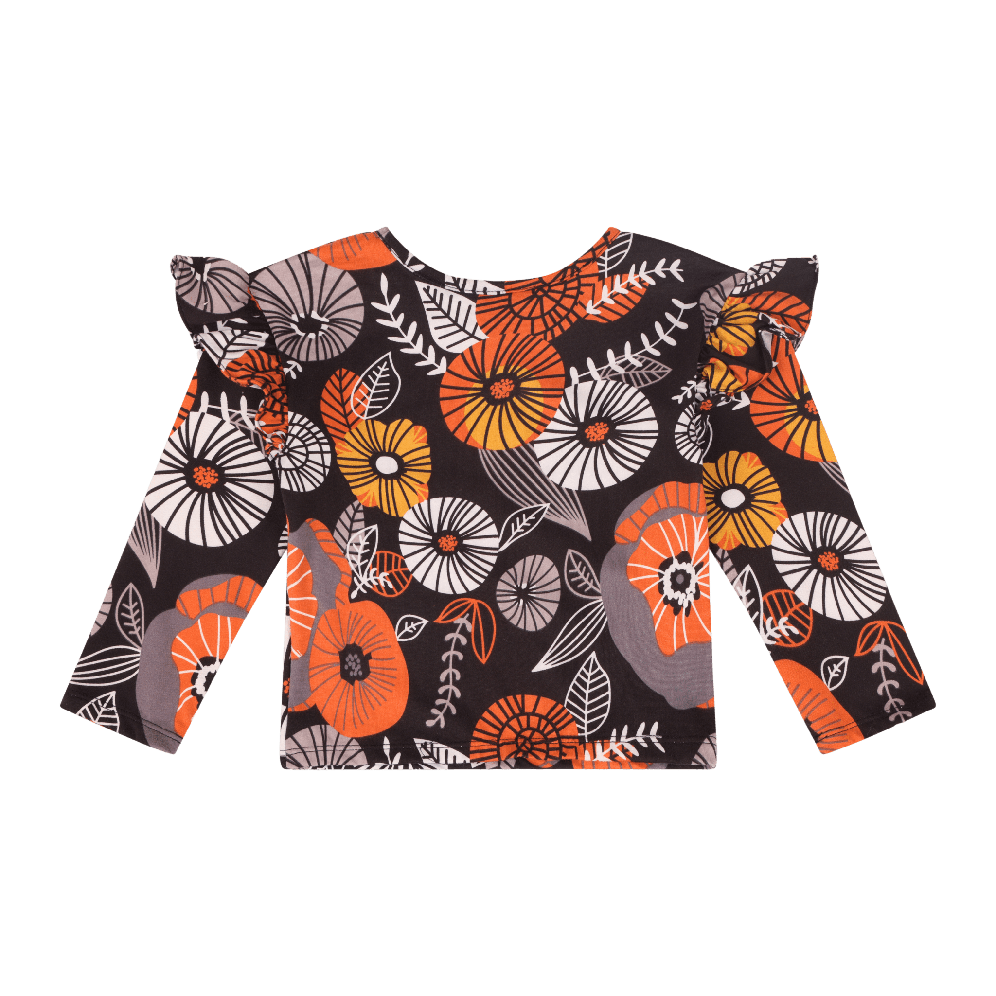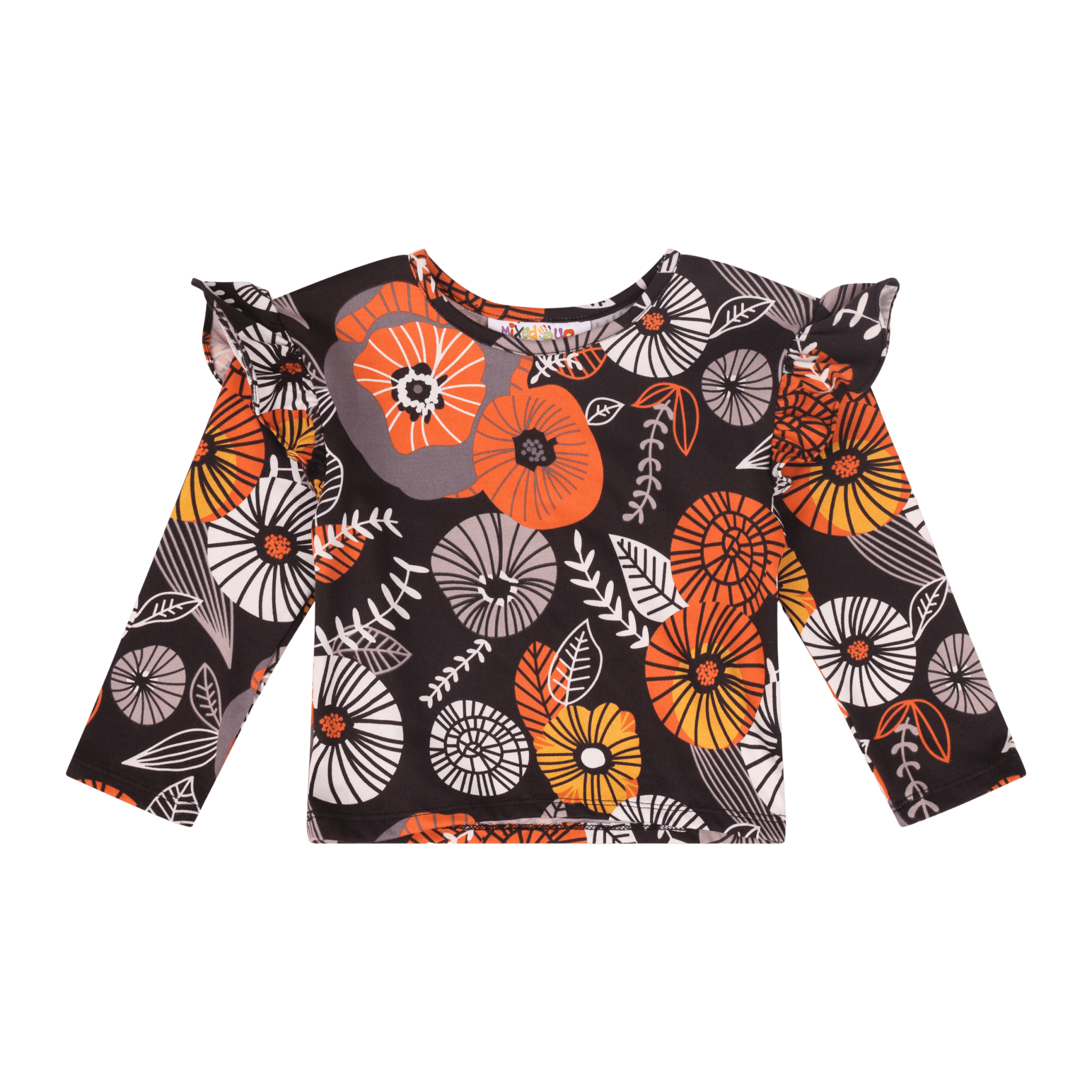 Baby Girls Ruffle Flutter Sleeve Top | Multicultural Kids Clothing ‐ Orange/Black Floral / 9m
