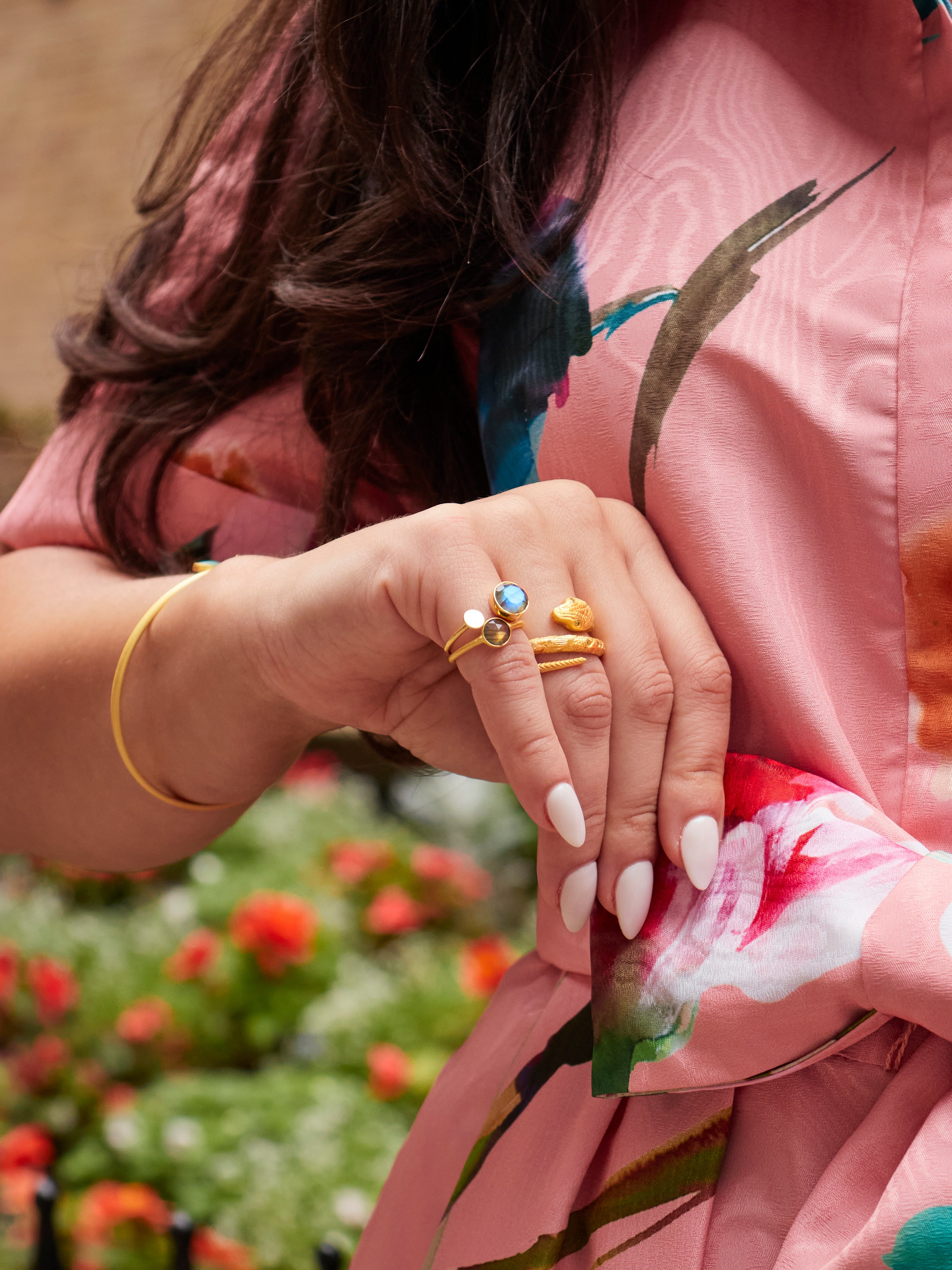 - Onyx, iolite, or citrine accent stones