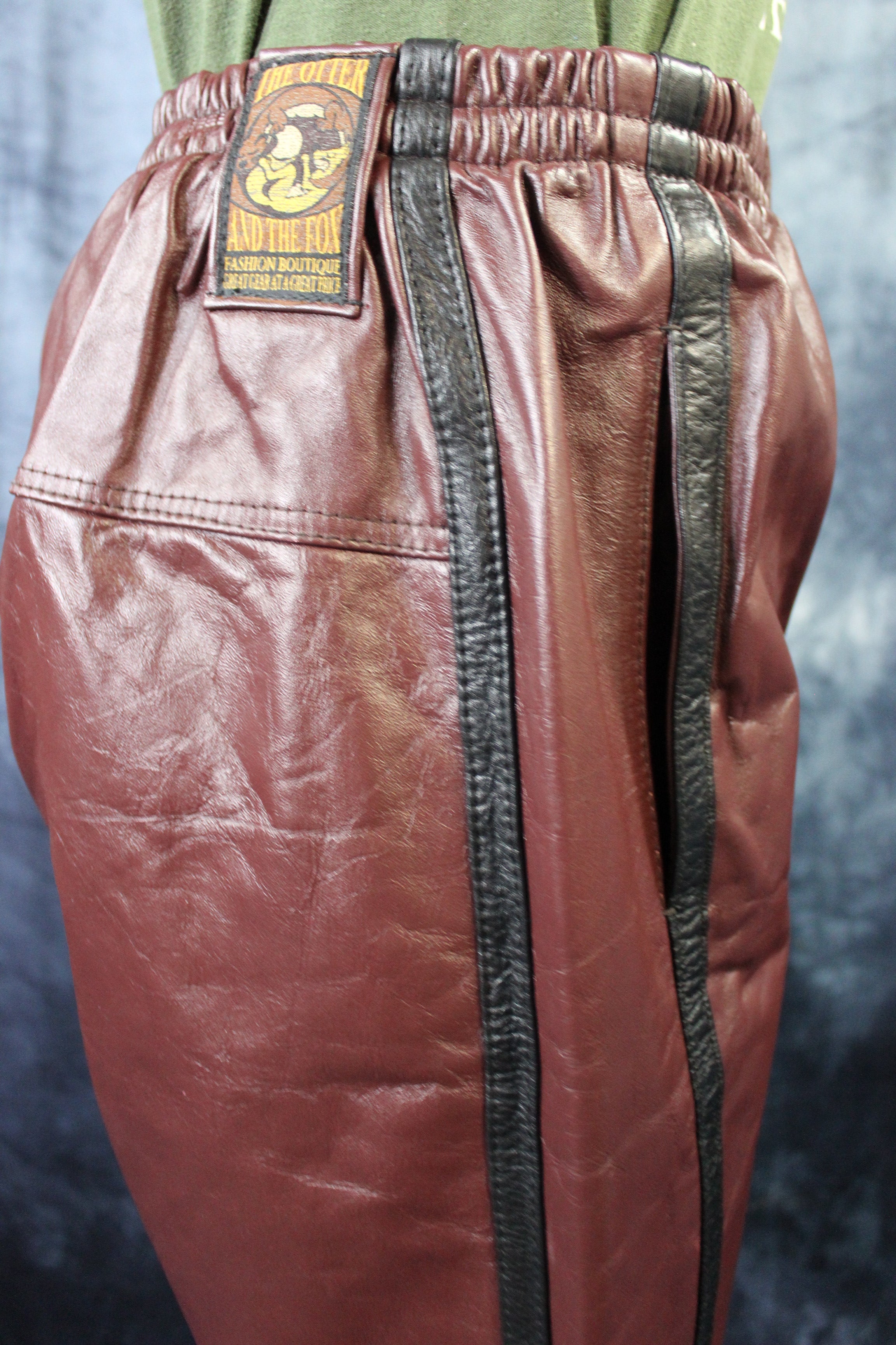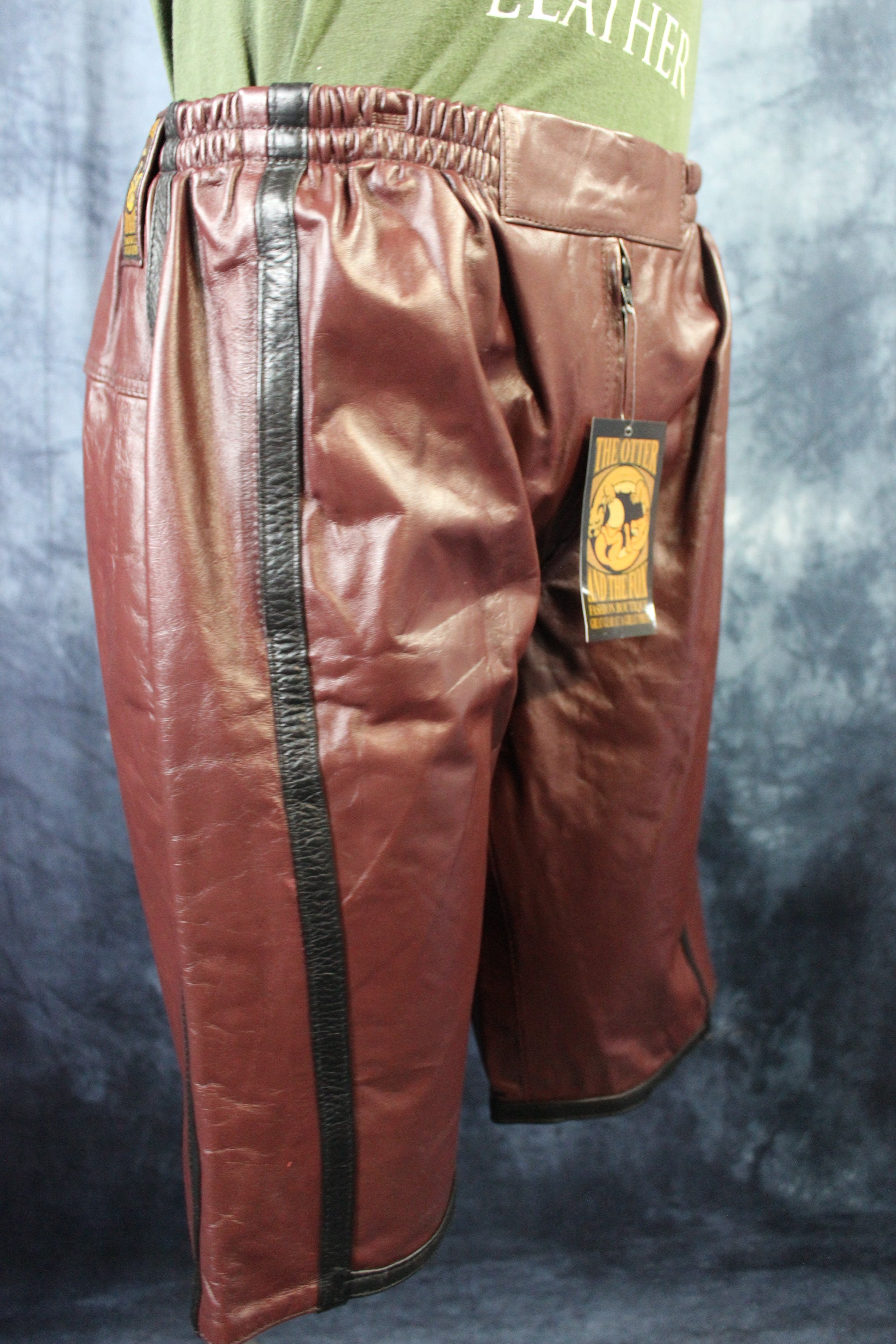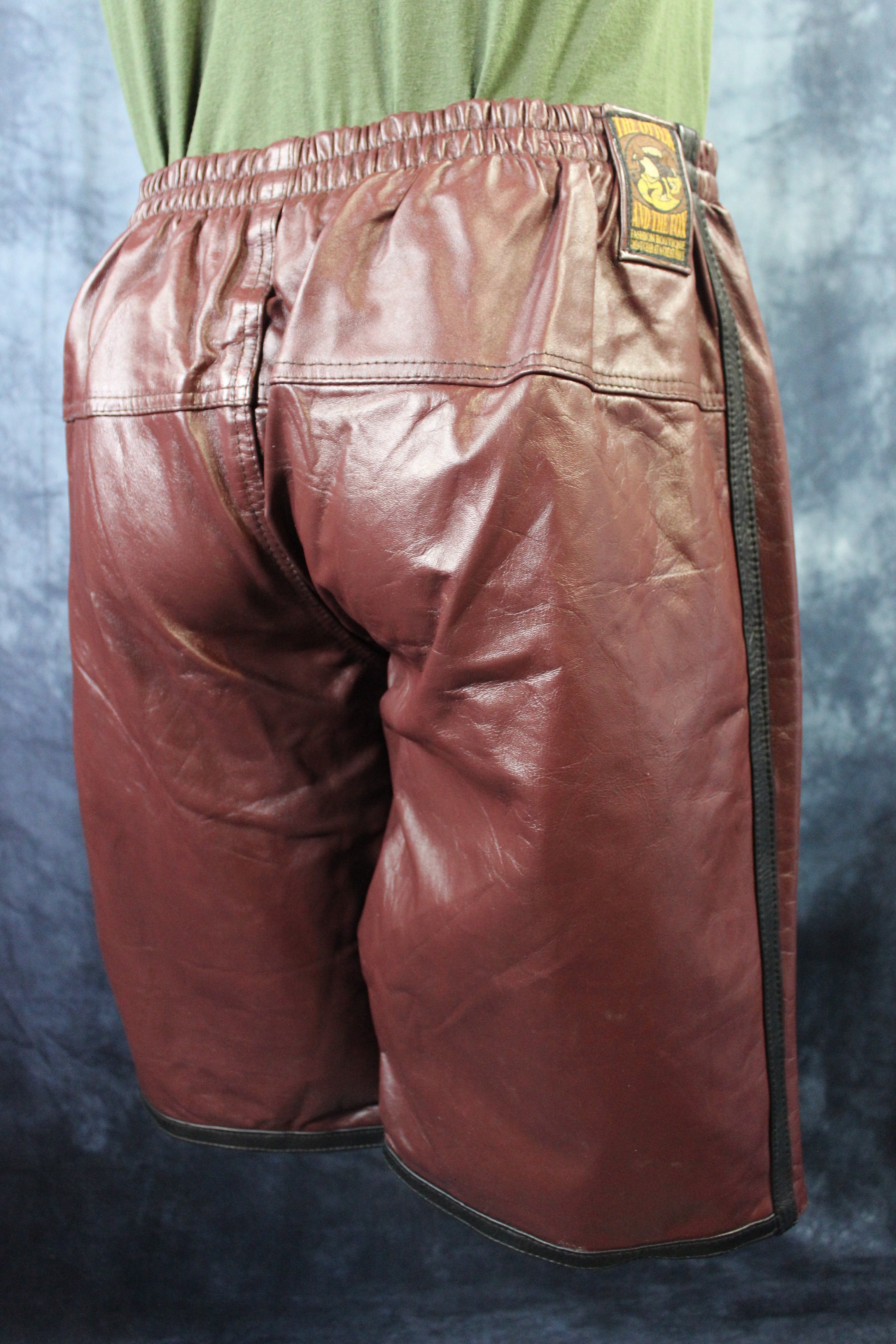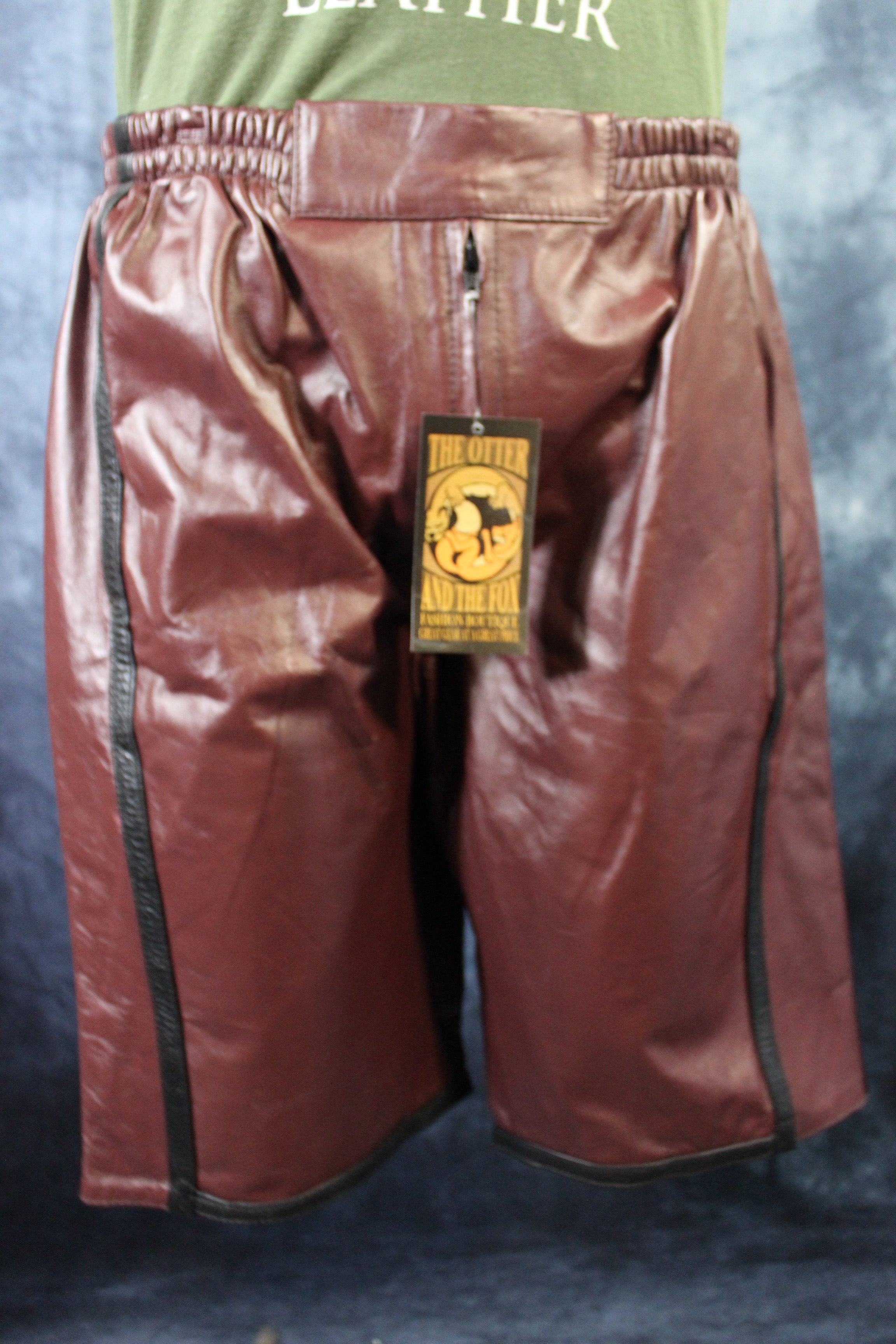 Enjoy the comfort of athletic wear with the luxury of leather with these shorts by The Otter and The Fox. These sporty shorts feature an elastic waistband for a comfortable, slip on fit, liner, and high quality leather. These shorts are loose and comfortable and are a perfect way to indulge your love of leather while looking and keeping cool in the hot summer.