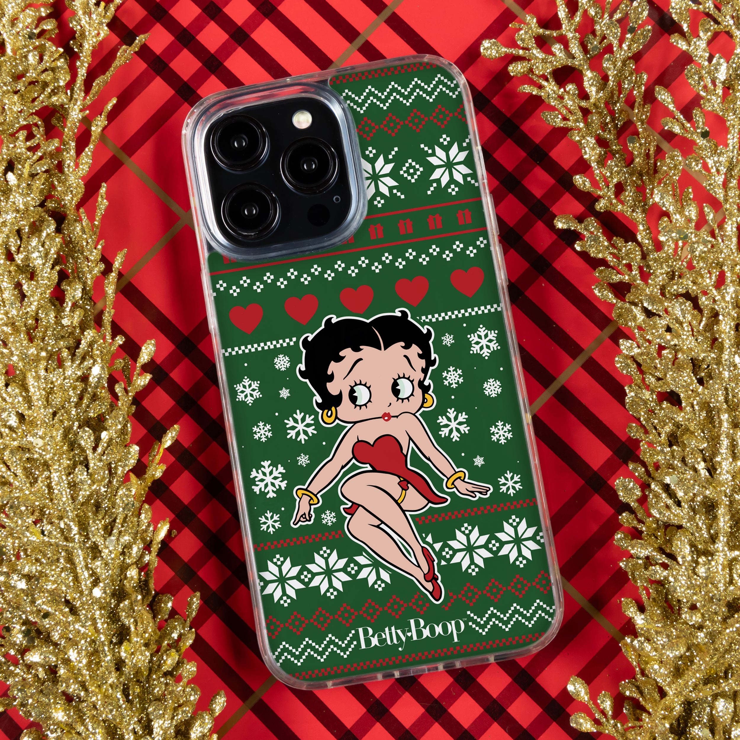 Betty Boop Happy Holidays HD Apple iPhone 14 Series Mag-Safe Phone Case ‐ Ugly Sweater / iPhone 14 Plus