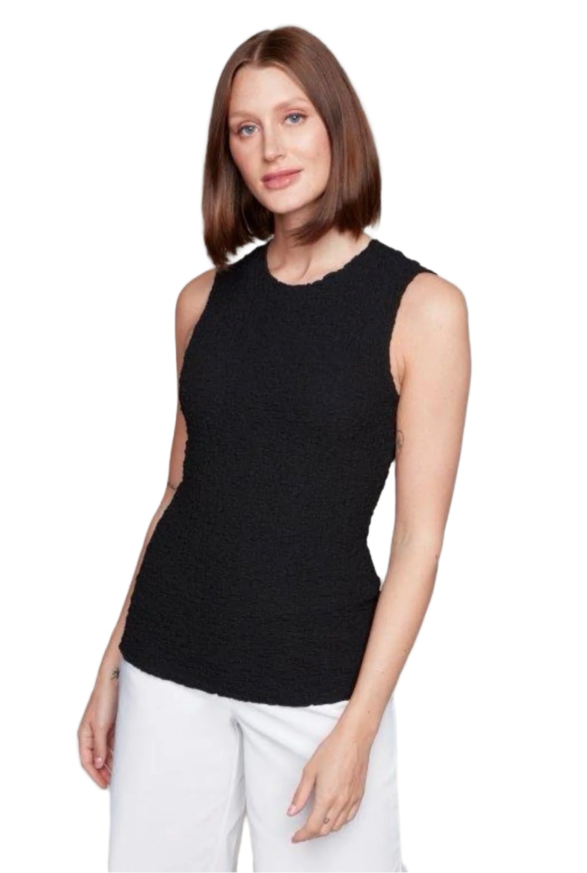 Classic sleeveless, textured, crew-neck top. Makes a great basic and laying piece.