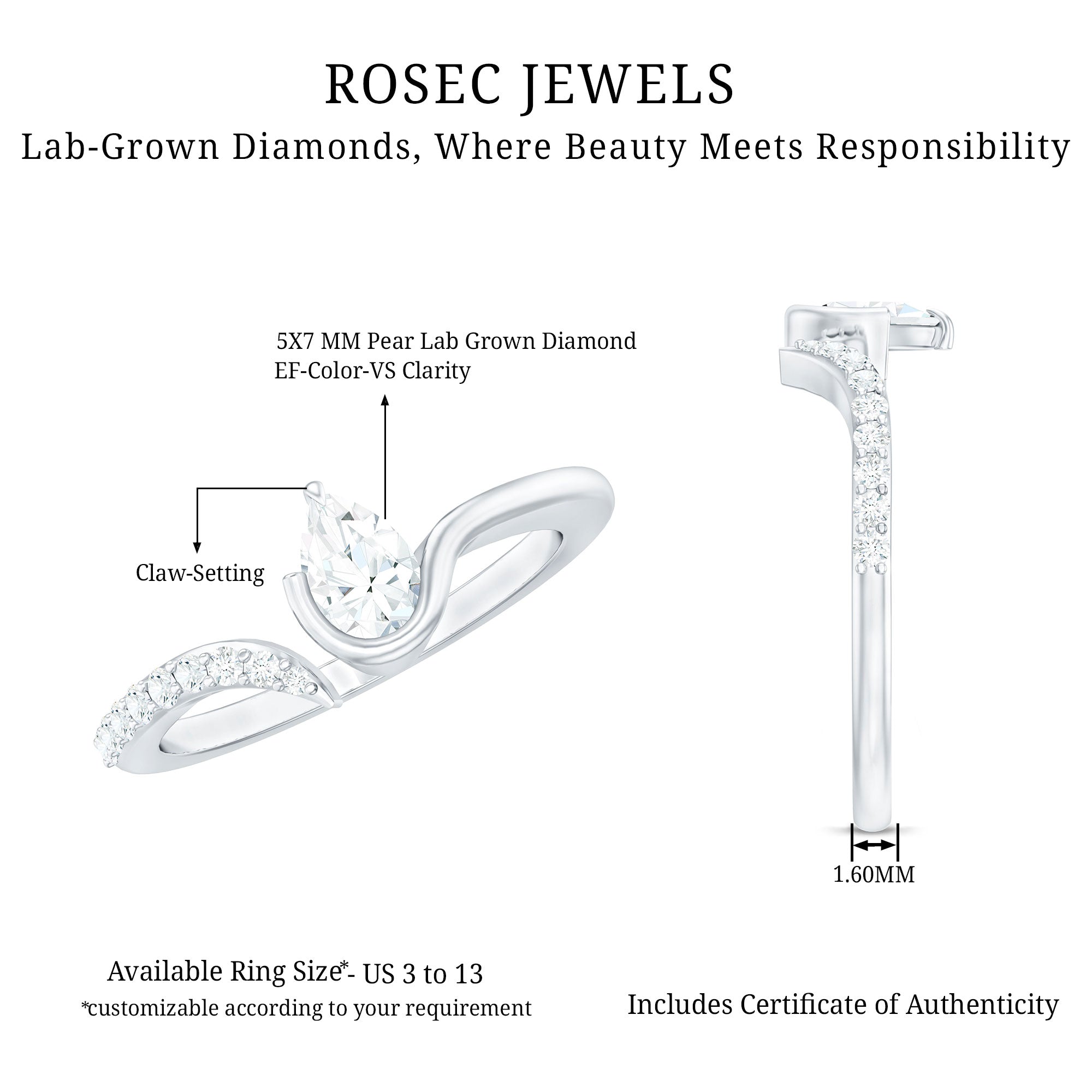 Certified Lab Grown Diamond Designer Promise Ring