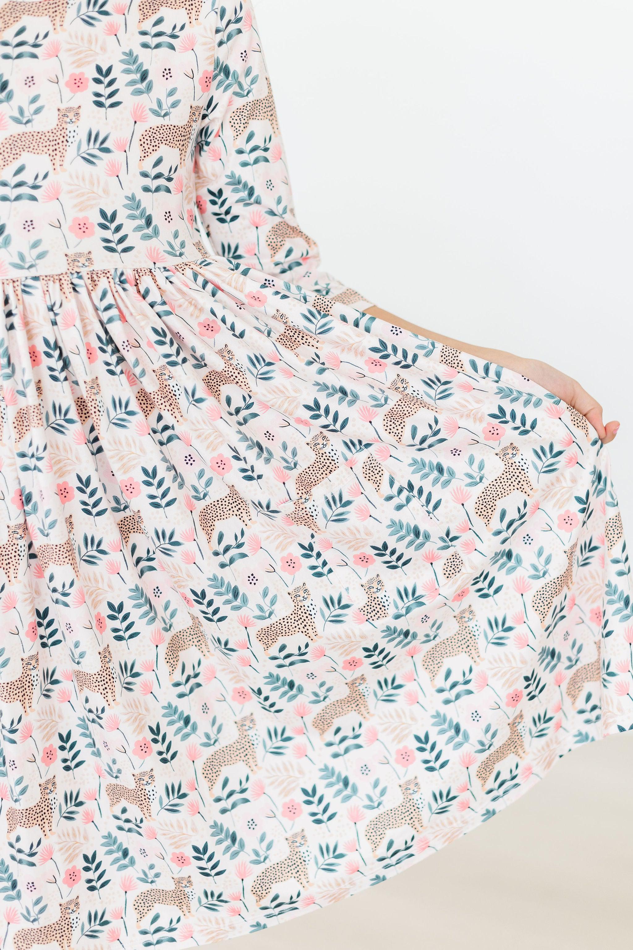 Cheetah Girl 3/4 Sleeve Pocket Twirl Dress ‐ 12-24M