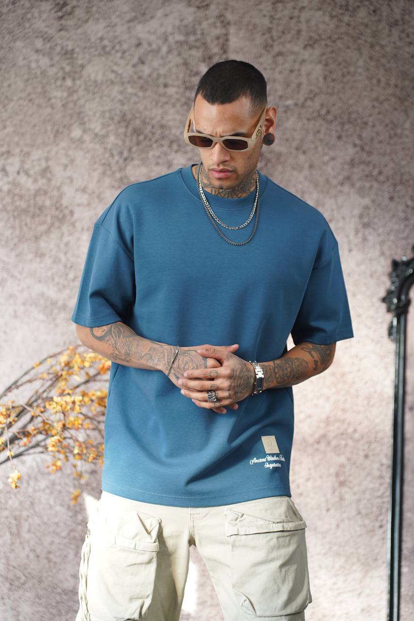 CITY VER Ancient Wisdom Tee - Inspirational Graphic T-Shirt - Timeless Design Streetwear Top ‐ Blue / XL