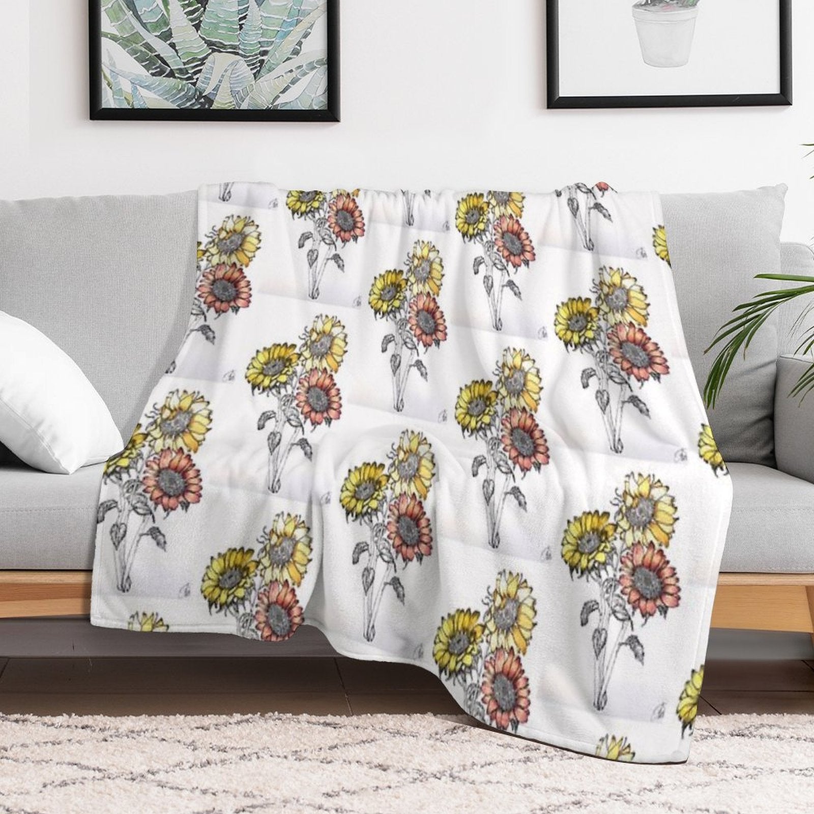 Colored Inked Sunflowers Throw Blanket ‐ 60"×80"