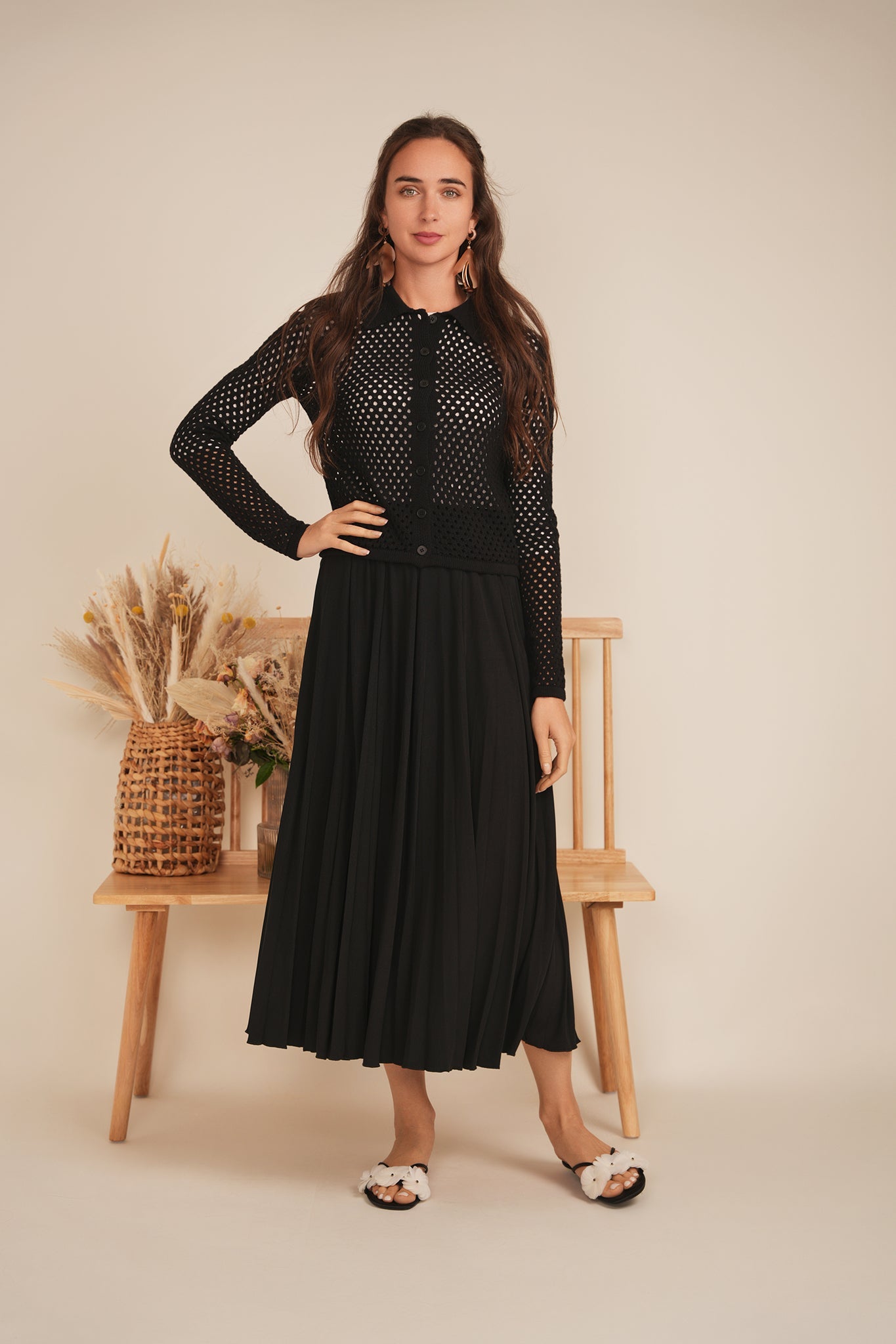Cropped Crochet Sweater ‐ Black / M