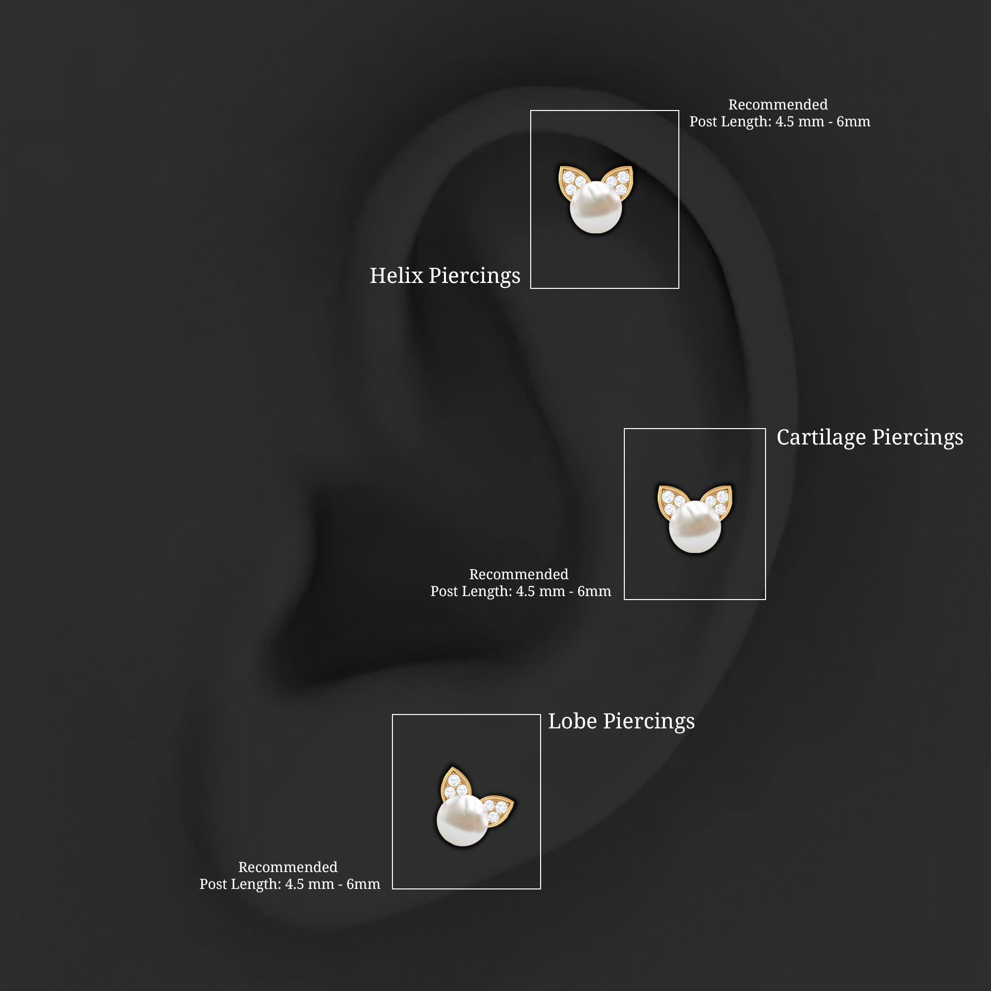 Adorn your Helix, Cartilage, or Upper Lobe Piercing with this Cute Freshwater Pearl Cat Earring! Featuring a Round Shape Freshwater Pearl in Bead Setting and pointed ears embellished with sparkling Round Cut moissanite. The Flat Back Closure ensures that this Kitty Cat Earring stays in place. Its a perfect gift for cat lovers on any occasion.