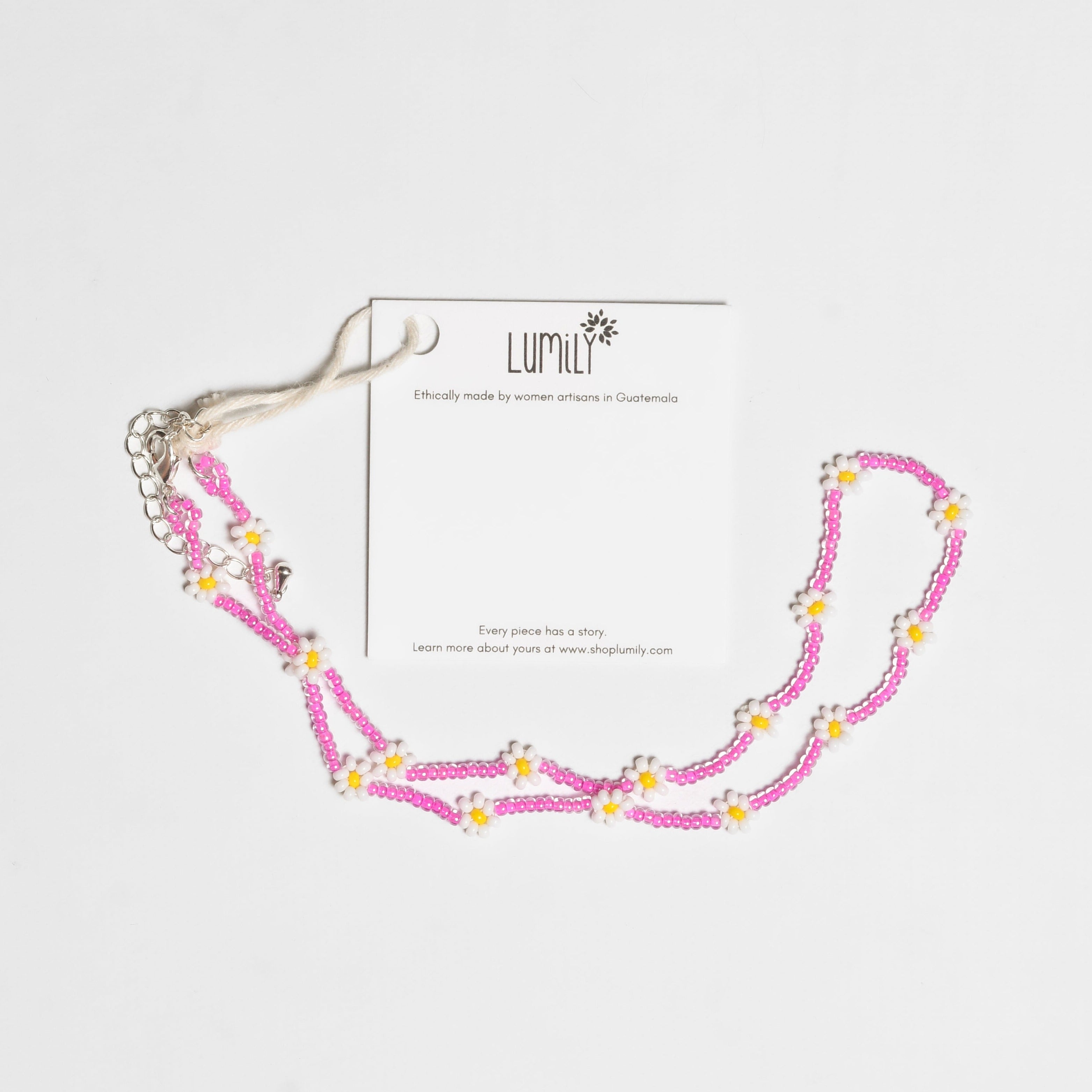 Daisy Seed Bead Choker - Guatemala ‐ Pink