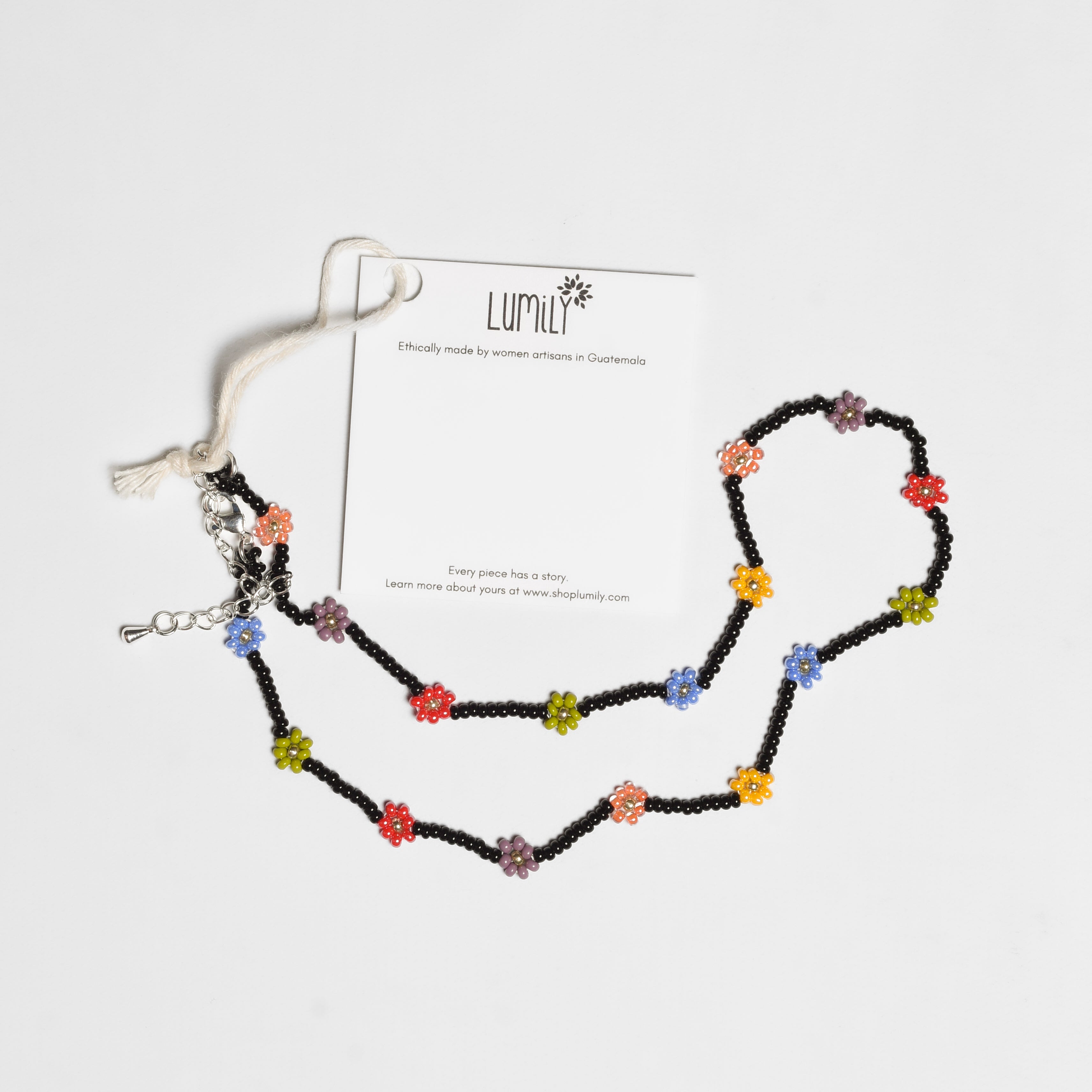 Daisy Seed Bead Choker - Guatemala ‐ Black Multi