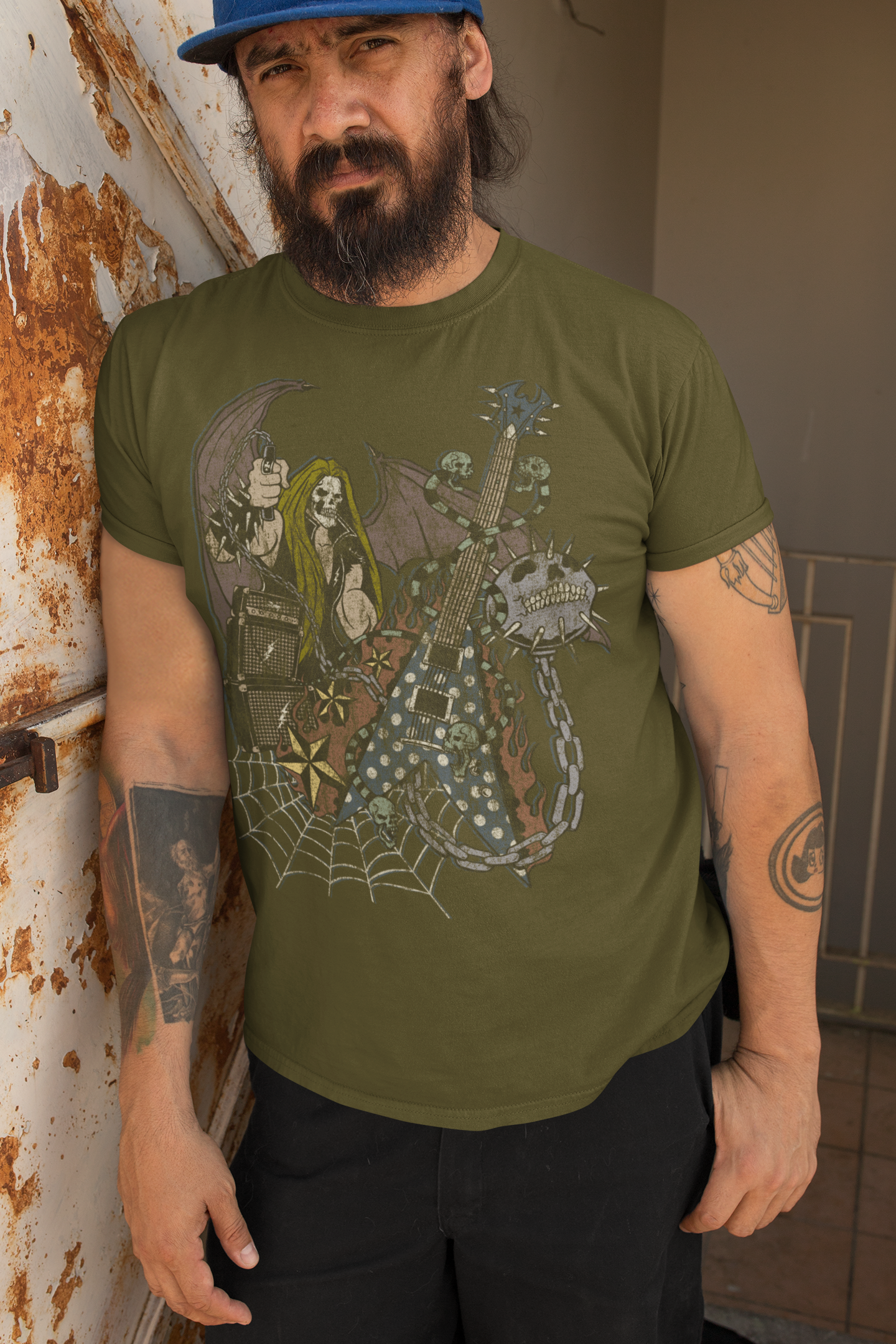 The Taboo "Death Metal" shirt embodies the dark, intense, and captivating essence of the genre. Crafted for devoted metalheads and fans of heavy music, this shirt showcases a mesmerizing design that merges powerful symbolism. It features a ferocious metal music figure wielding a spiked ball and chain, surrounded by an aura of defiance. Additionally, a guitar with twin snakes intertwining around it adds an element of mystique and intrigue. With its striking visuals, this shirt captures the very spirit of death metal culture.