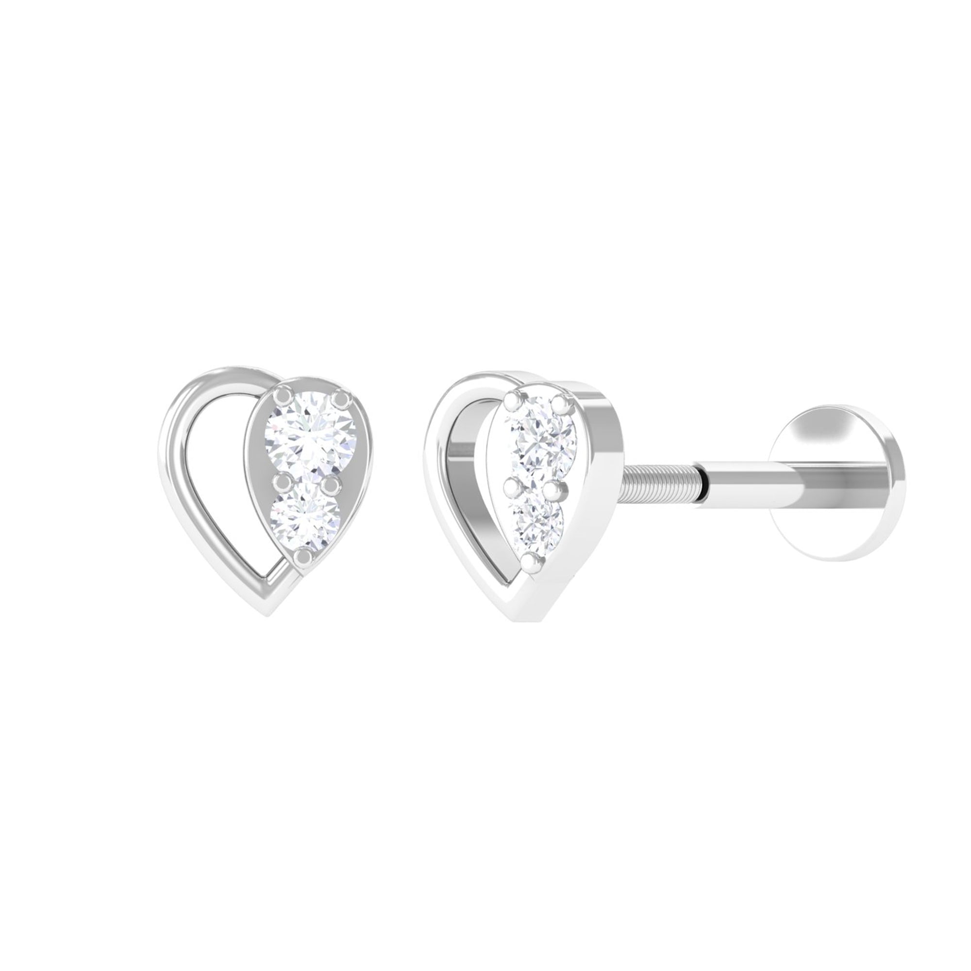 Diamond Heart Earring for Conch Piercing ‐ Natural - ( HI-SI ) / 14K White Gold / Flat Back 5.5 MM