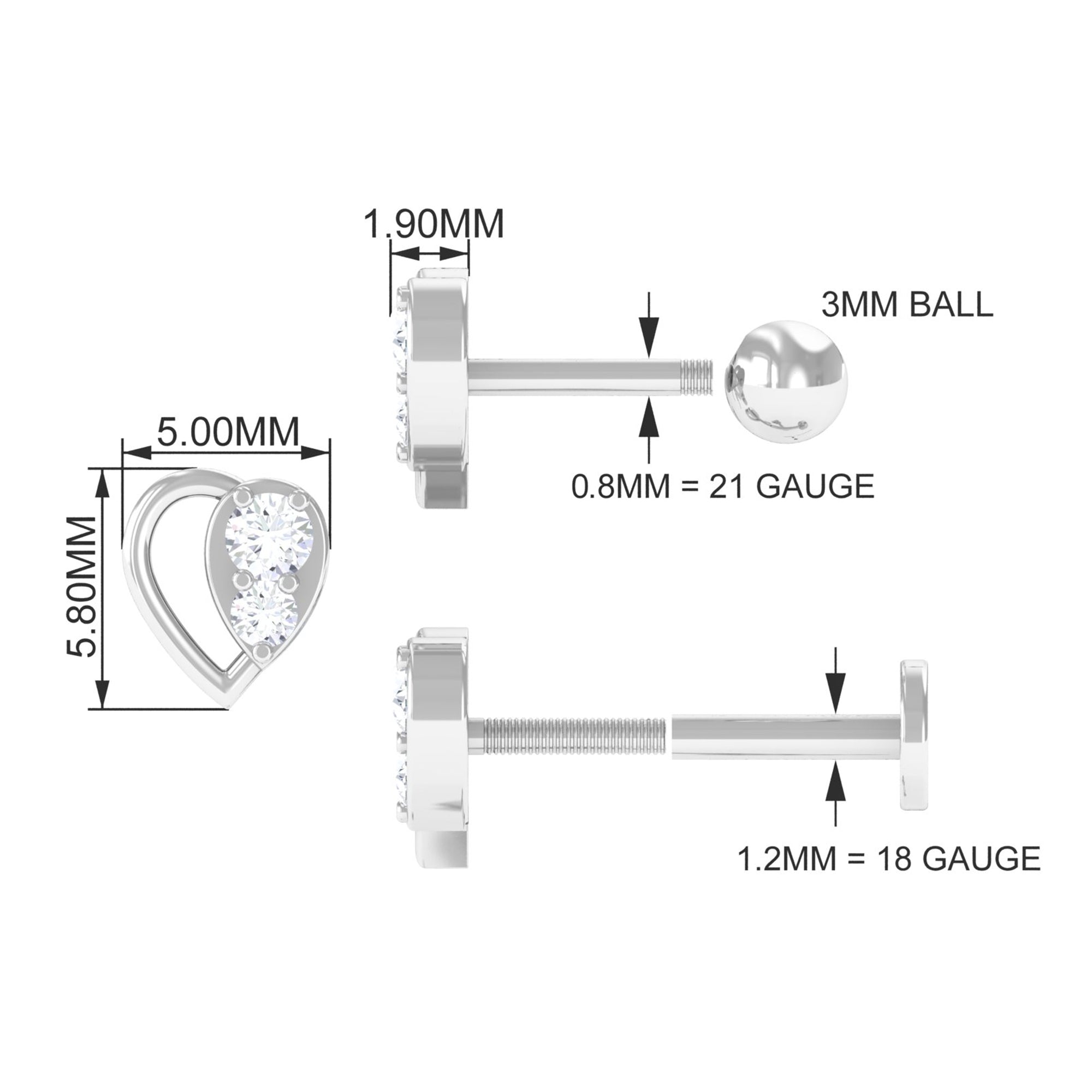 Diamond Heart Earring for Conch Piercing ‐ Natural - ( HI-SI ) / 18K White Gold / Flat Back 5.5 MM