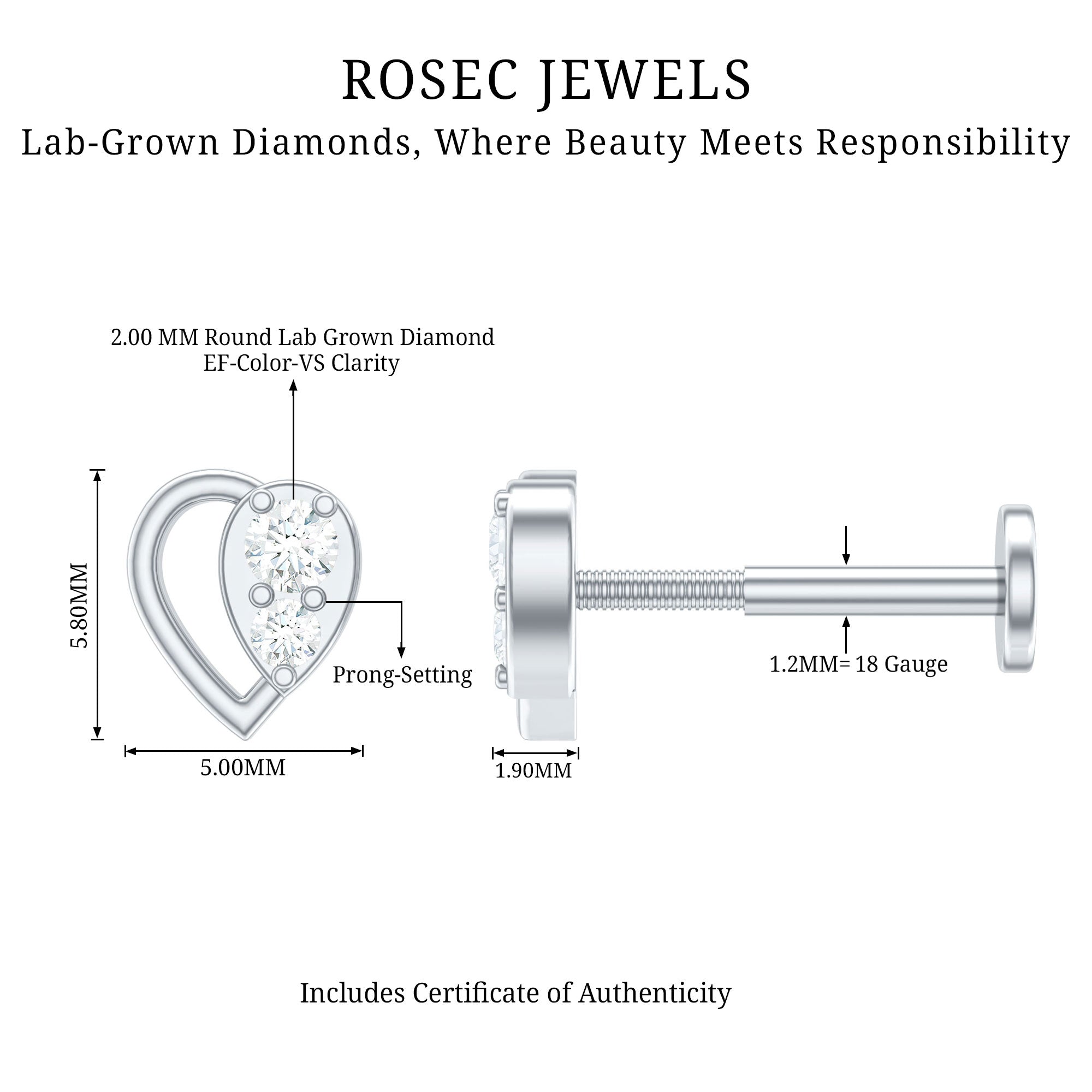 Diamond Heart Earring for Conch Piercing ‐ Lab - ( EF-VS ) / 18K White Gold / Flat Back 5.5 MM