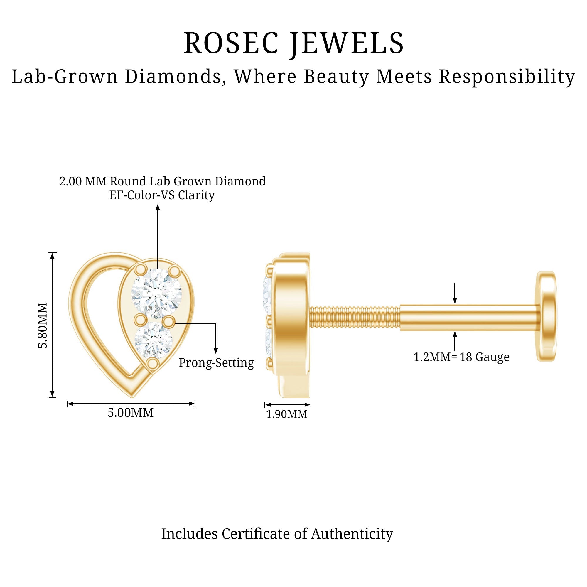 Diamond Heart Earring for Conch Piercing ‐ Lab - ( EF-VS ) / 14K Yellow Gold / Flat Back 5.5 MM