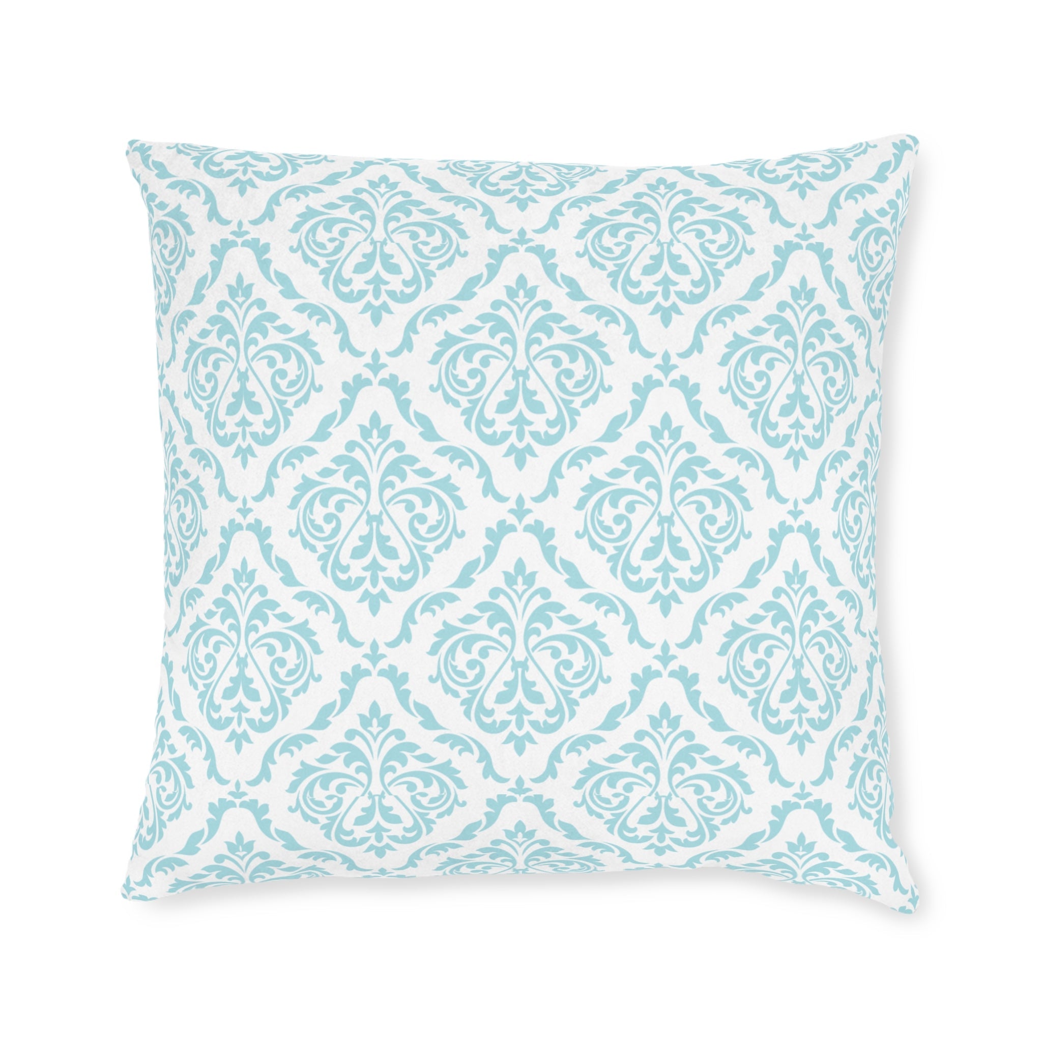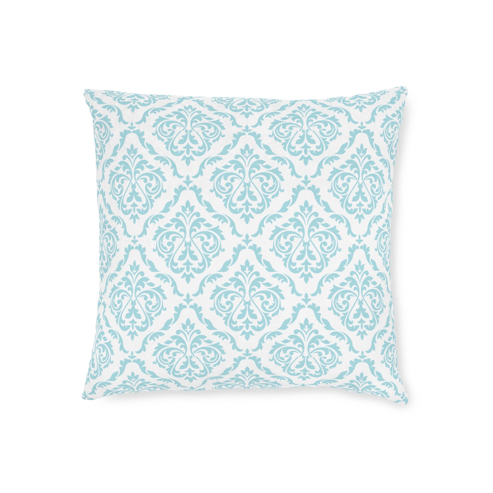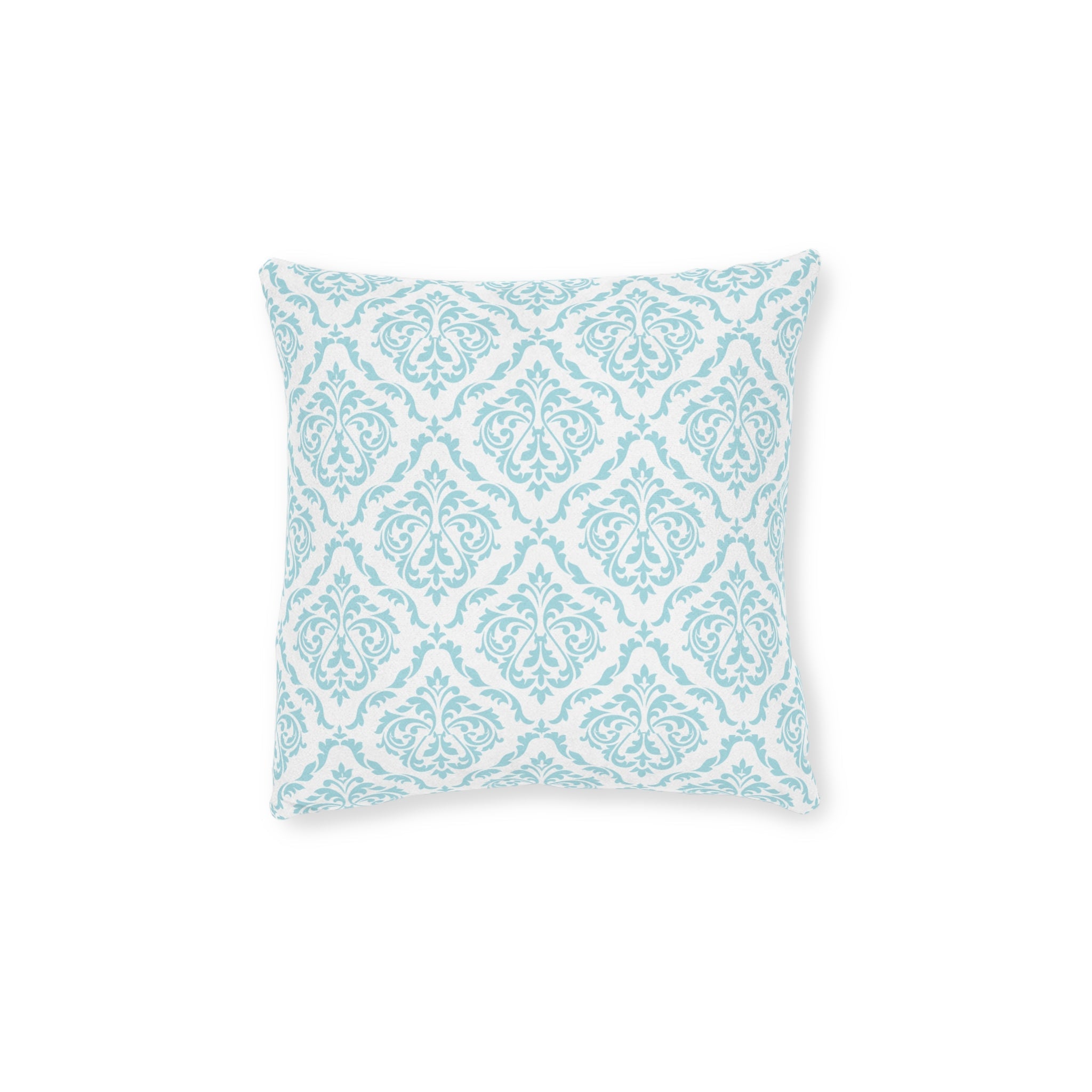 Made from high-quality, soft fabric, this square cushion is perfect for enhancing your coastal or modern home decor. The calming aqua tones and intricate damask design make it a standout accent piece, ideal for adding color and texture to your living room, guest room, or reading nook.
