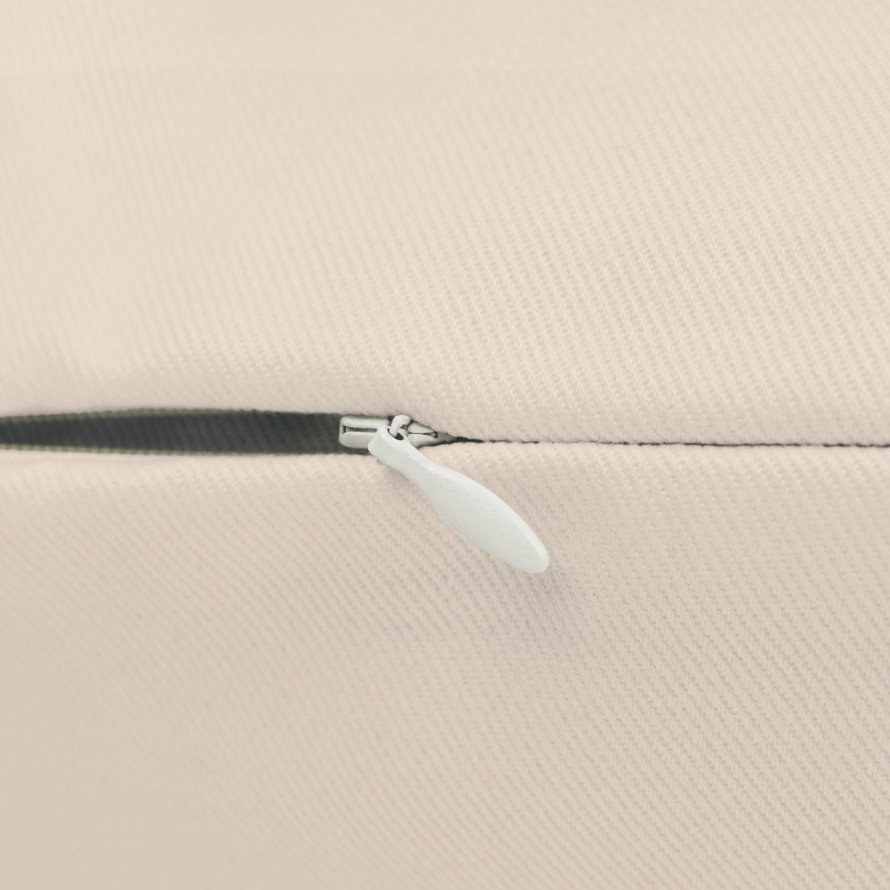 - Stylish beige plastic zipper with a metal head for easy access