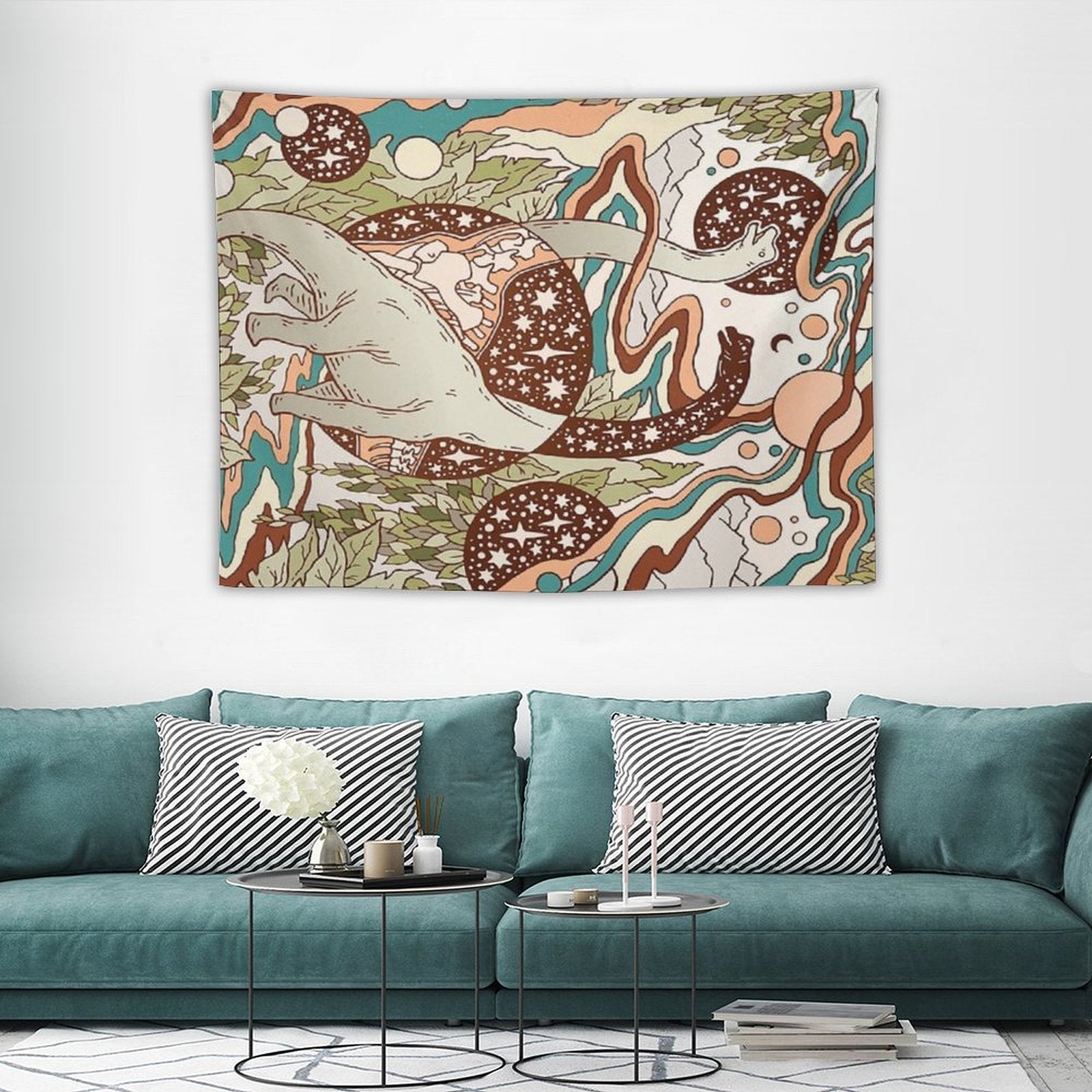 💓【MULTI-FUNCTION】 Used "Jurassic Portal Retro Rainbow Palette Dinosaur Science Fiction Art Tapestry" to decorate your bedroom, college dorm, room, living room, kitchen wall, can be used as tapestry or wall hanging, bedspread, tablecloth, dormitory decoration, beach shawl, tablecloth, etc.