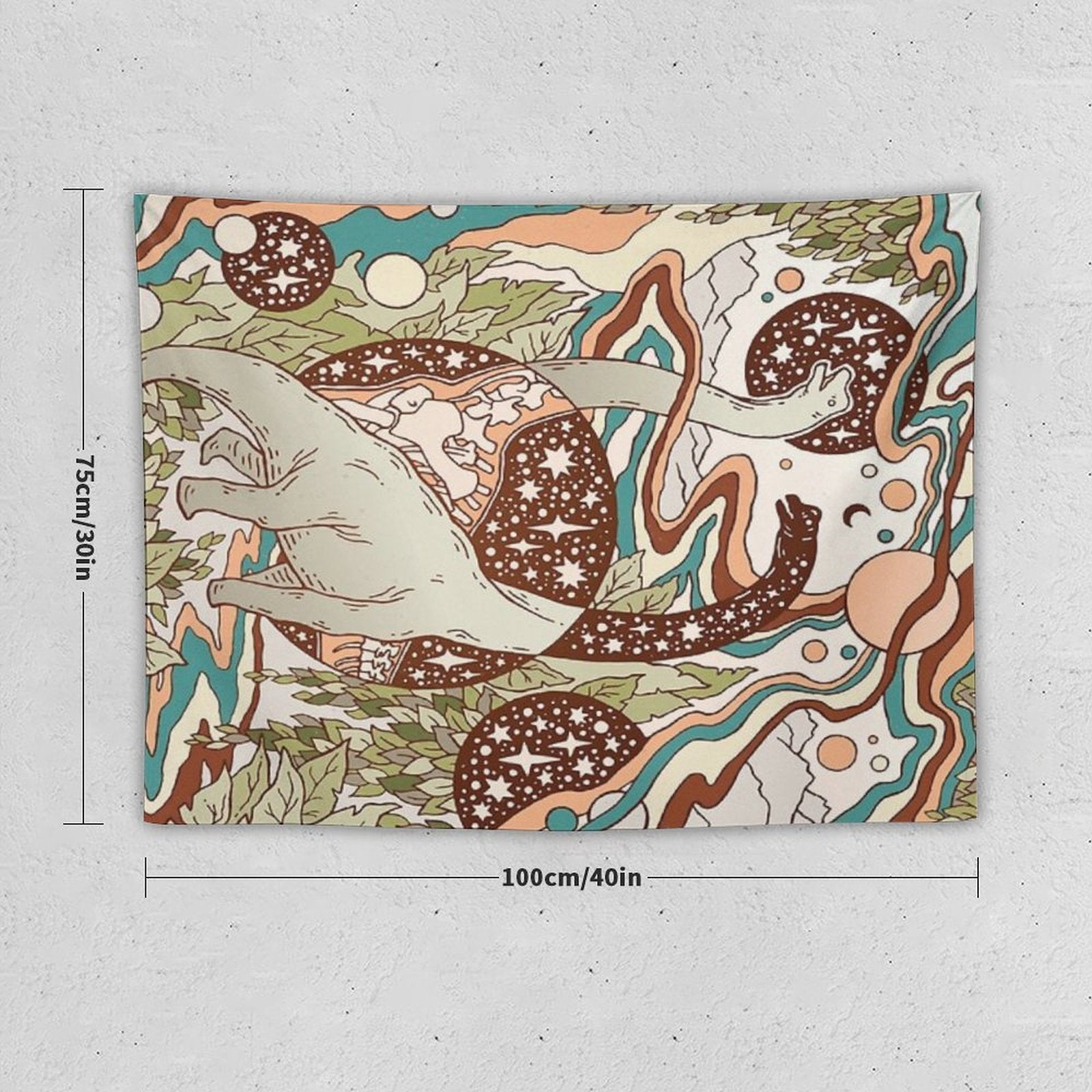 BionZax's Jurassic Portal Retro Rainbow Palette Dinosaur Science Fiction Art Tapestry for Bedroom, College Dorm. Jurassic Portal Retro Rainbow Palette Dinosaur Science Fiction Art Tapestry to decorate your bedroom, college dorm, living room, or kitchen wall, it is the best gift for funny, meme, aesthetic, trendy, simple, fashion, music, abstract, fantasy, modern tapestry for girls, men, boys, teen, women, kids.