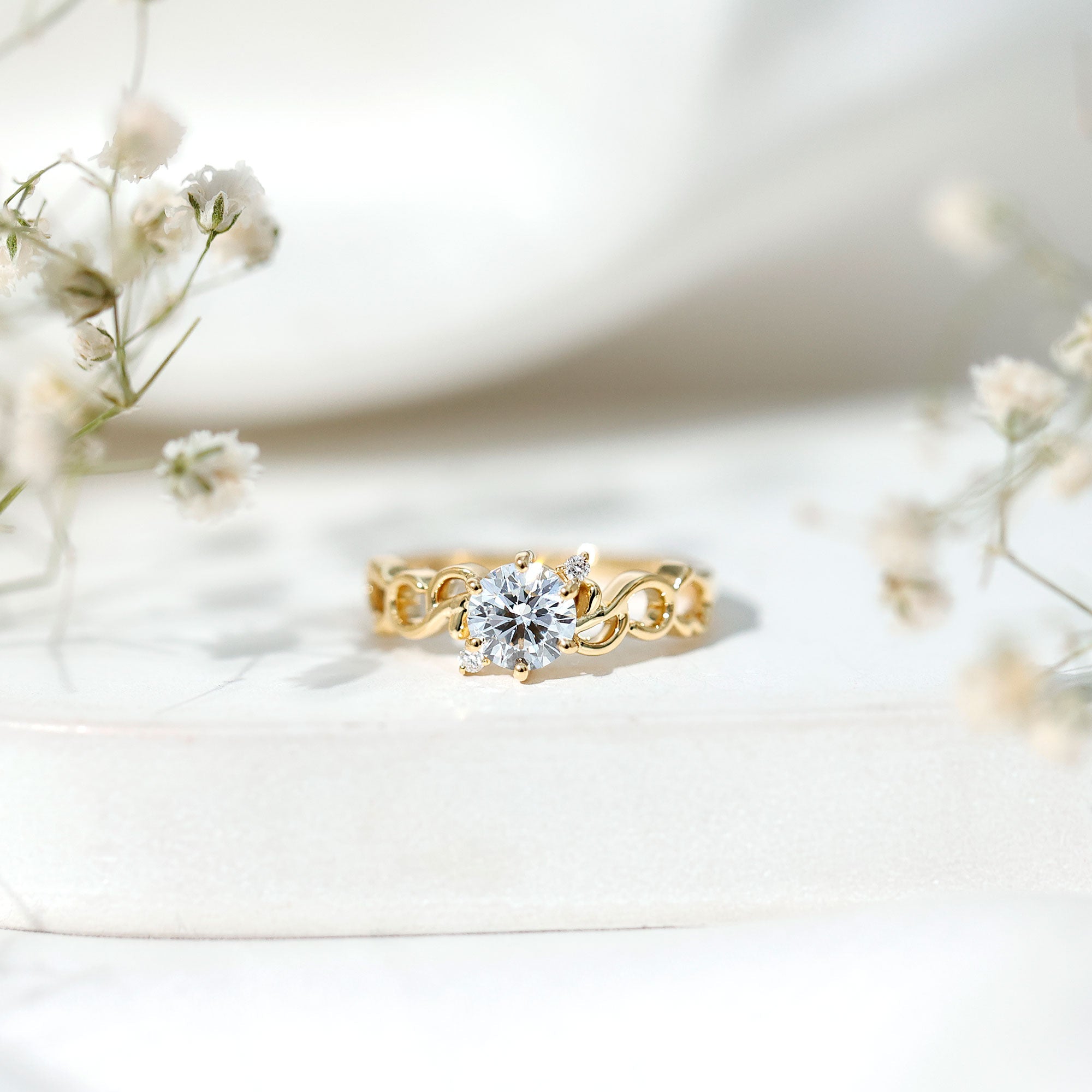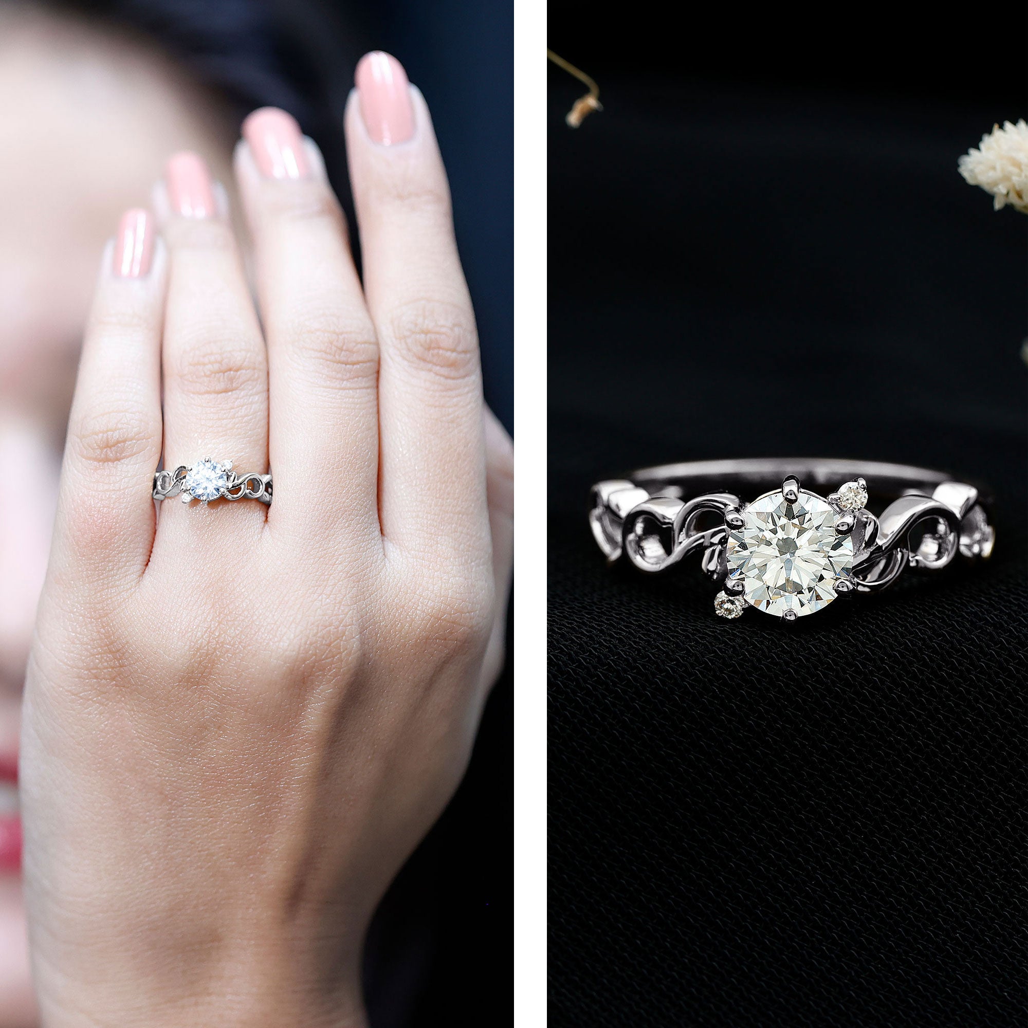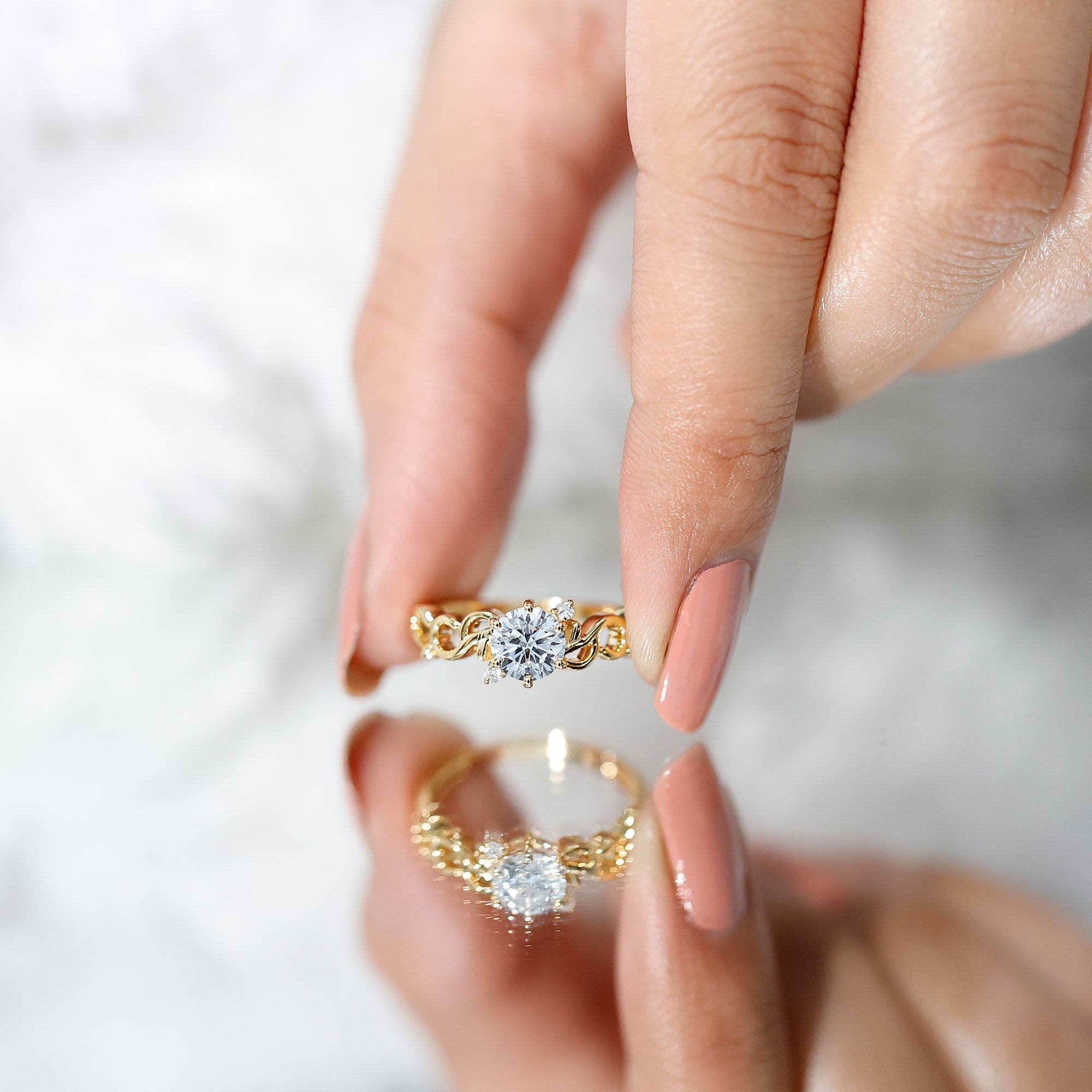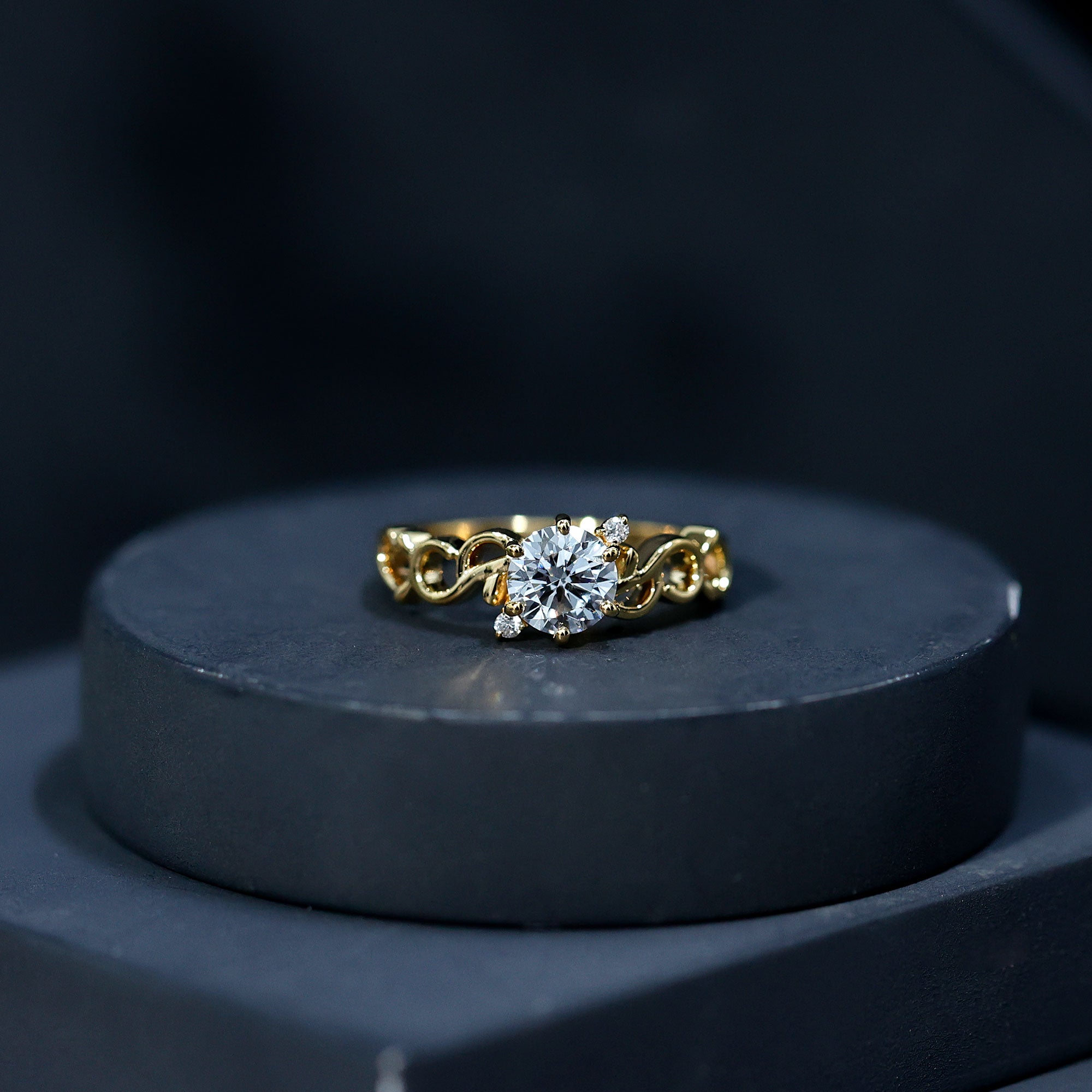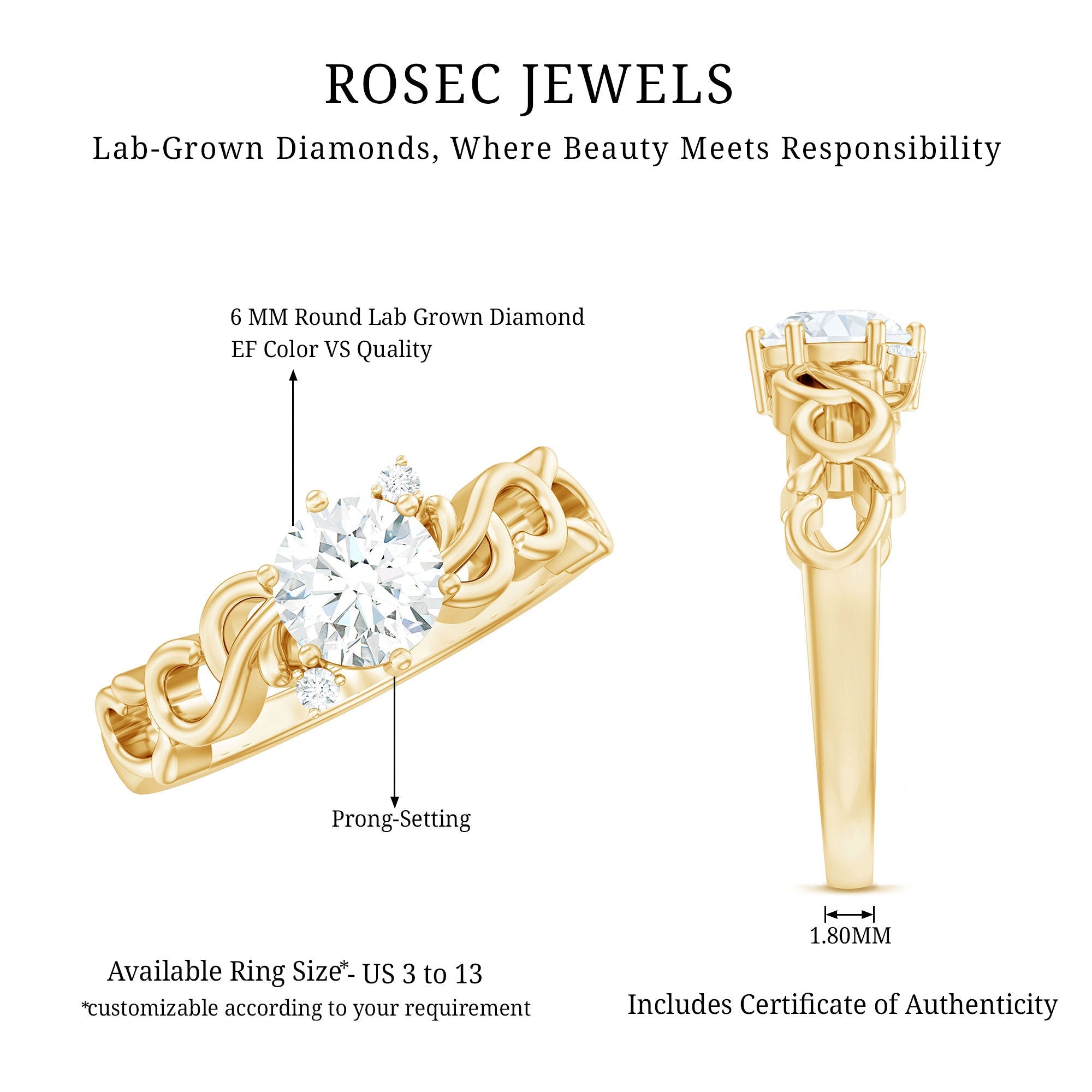 Celebrate love with our exquisite Engagement Ring, featuring a dazzling 6 mm Round Shaped Lab Grown Diamond set elegantly on a uniquely designed shank. The captivating simplicity of the Round shaped Created diamond is perfectly complemented by the intricate details of the shank, creating a timeless symbol of commitment and unity. Crafted with precision and passion, this Classic Diamond Ring is a radiant expression with Ef-Vs Quality Diamonds defining your everlasting promise and the beginning of a beautiful journey together.