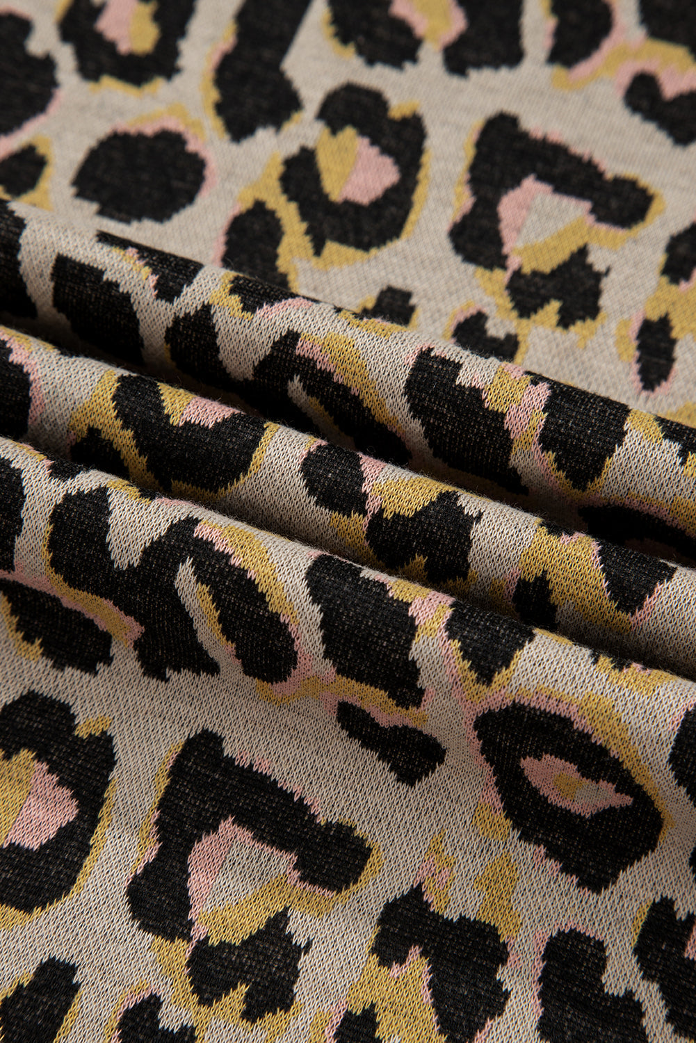 Leopard Contrast Edge Pullover and Shorts Set ‐ Pink / XL