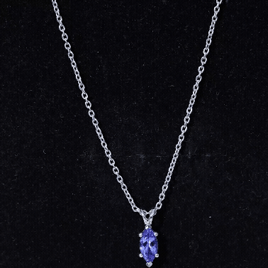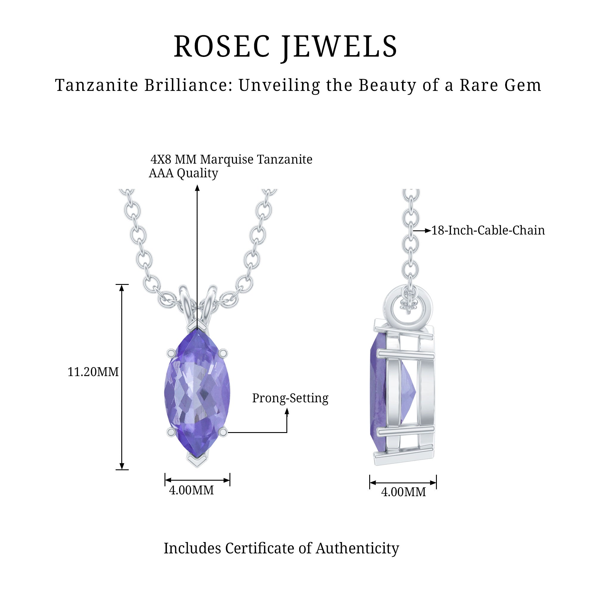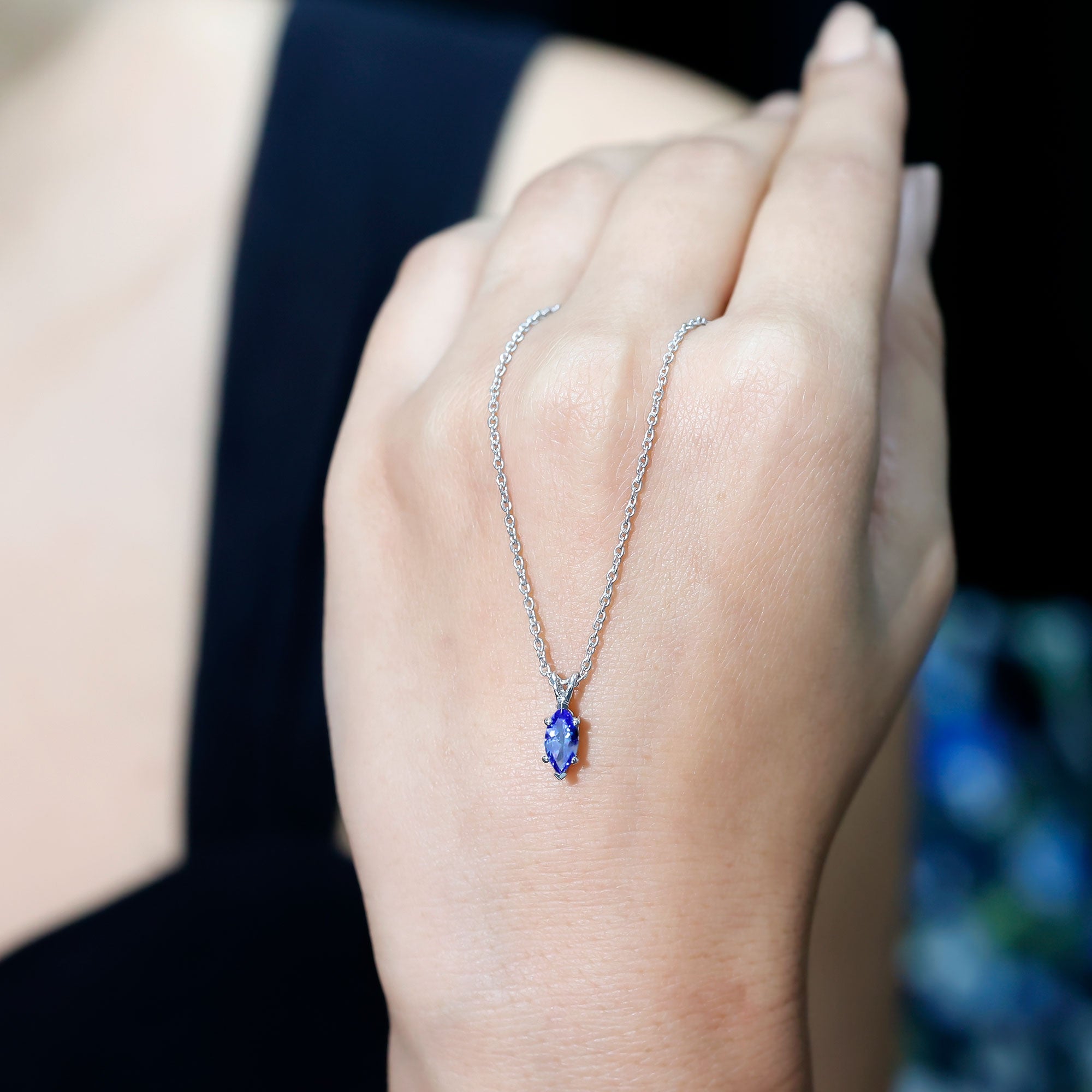 Marquise Cut 4X8 MM Tanzanite Solitaire Necklace with Silver Chain ‐ AAA / 92.5 Sterling Silver