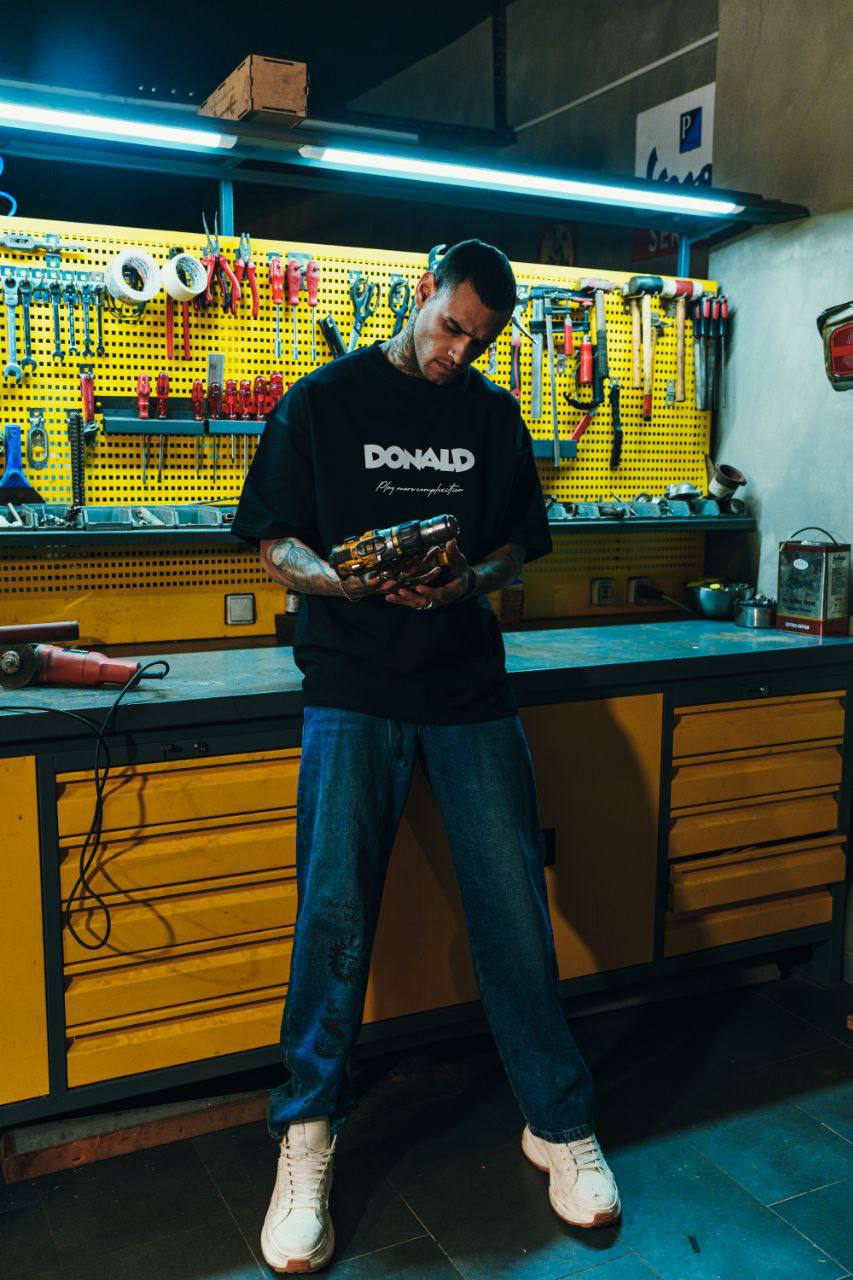 - Design: Comic-style 'DONALD' print with "Play More Complexity" slogan