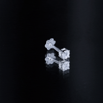 Minimalist Diamond Solitaire Earring for Tragus Piercing ‐ Lab - ( EF-VS ) / 18K White Gold / Flat Back 6.0 MM