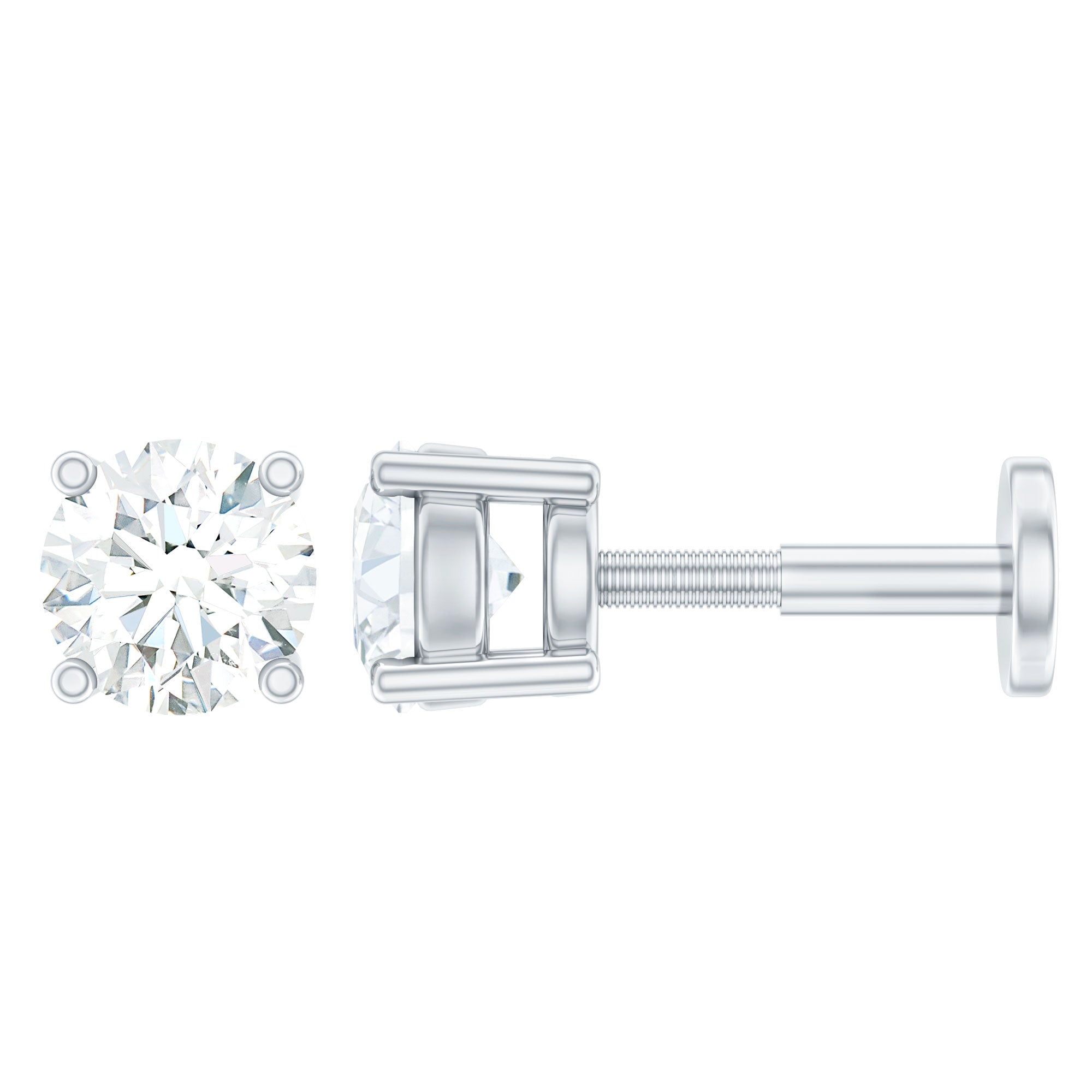 Minimalist Diamond Solitaire Earring for Tragus Piercing ‐ Natural - ( HI-SI ) / 18K White Gold / Flat Back 4.5 MM