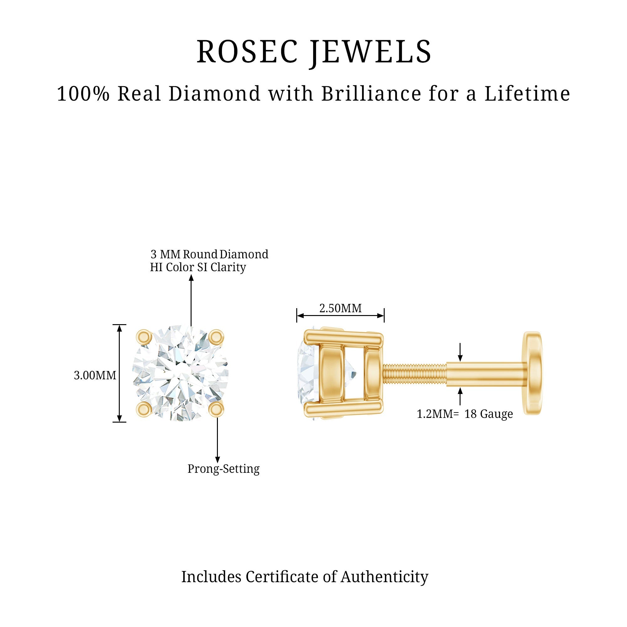 Minimalist Diamond Solitaire Earring for Tragus Piercing ‐ Natural - ( HI-SI ) / 18K Yellow Gold / Flat Back 5.0 MM