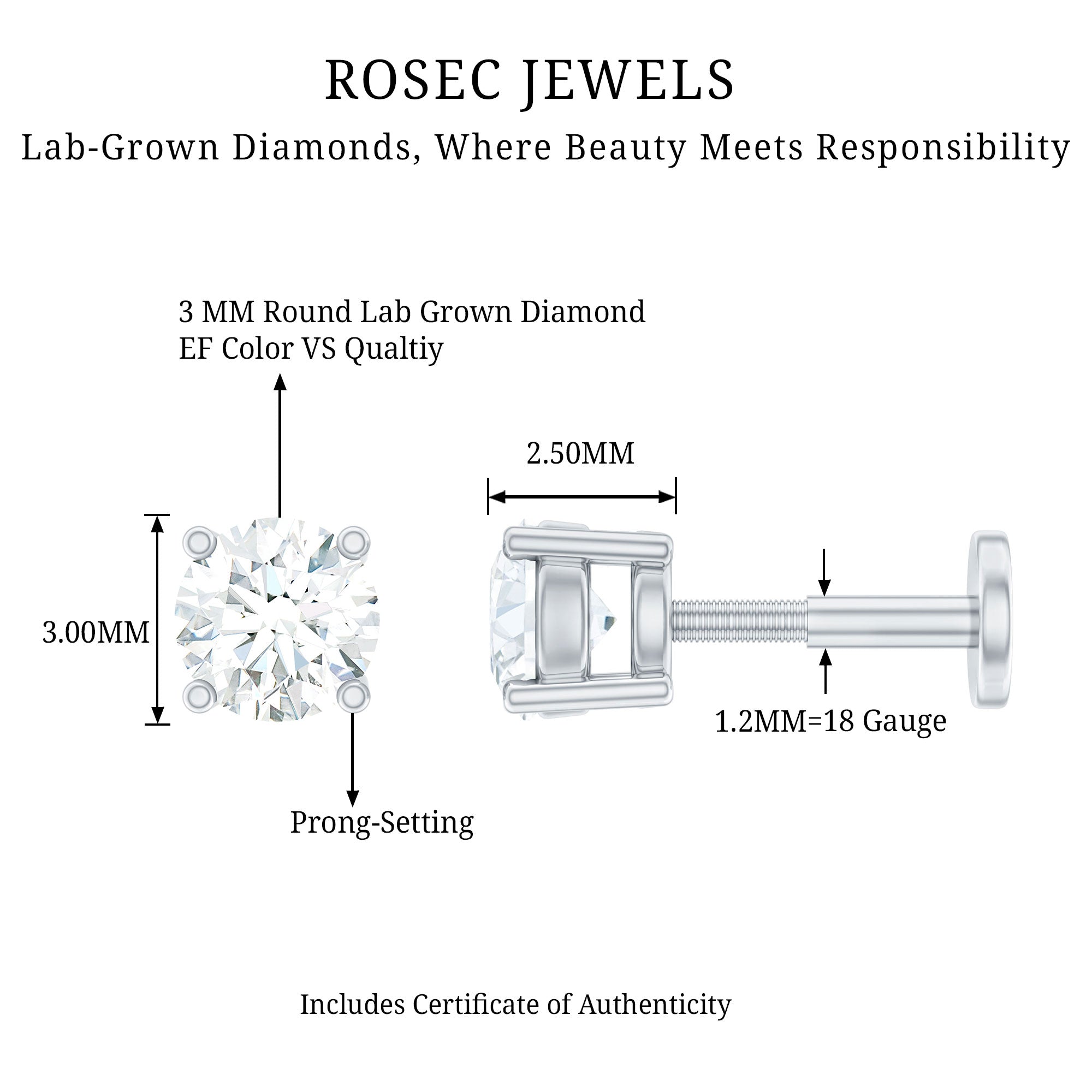 Minimalist Diamond Solitaire Earring for Tragus Piercing ‐ Lab - ( EF-VS ) / 18K White Gold / Flat Back 5.0 MM