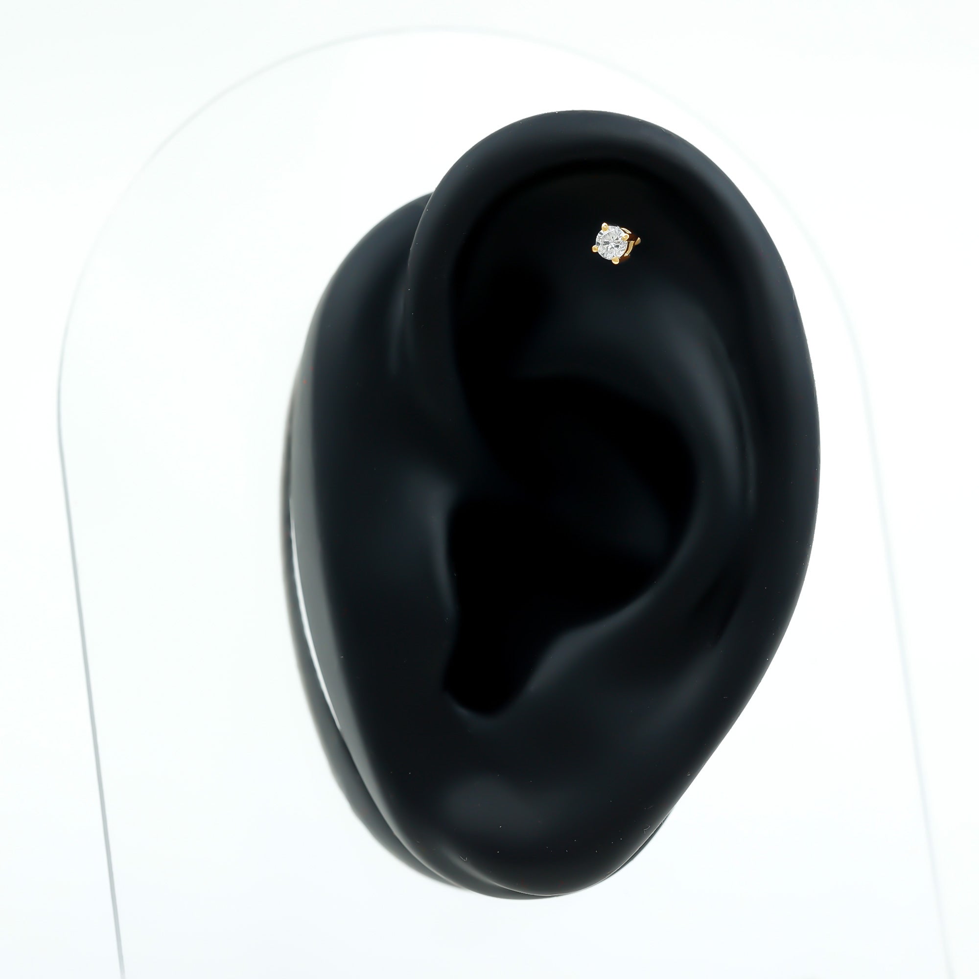 Minimalist Diamond Solitaire Earring for Tragus Piercing ‐ Lab - ( EF-VS ) / 10K Yellow Gold / Flat Back 4.5 MM