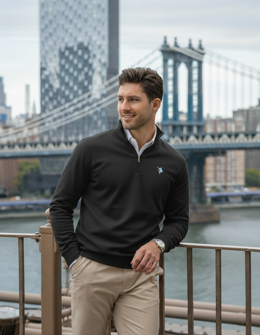 The tip of Long Islands east end. Montauk is famous for many things and just a great place to visit with family and friends. The Montauk 1/4 zip pullover features soft brushed poly spandex and side venting, for a great hand feel and just the right amount of stretch. Great for a harbor walk, out to dinner or a round of golf when a long sleeve top is needed.