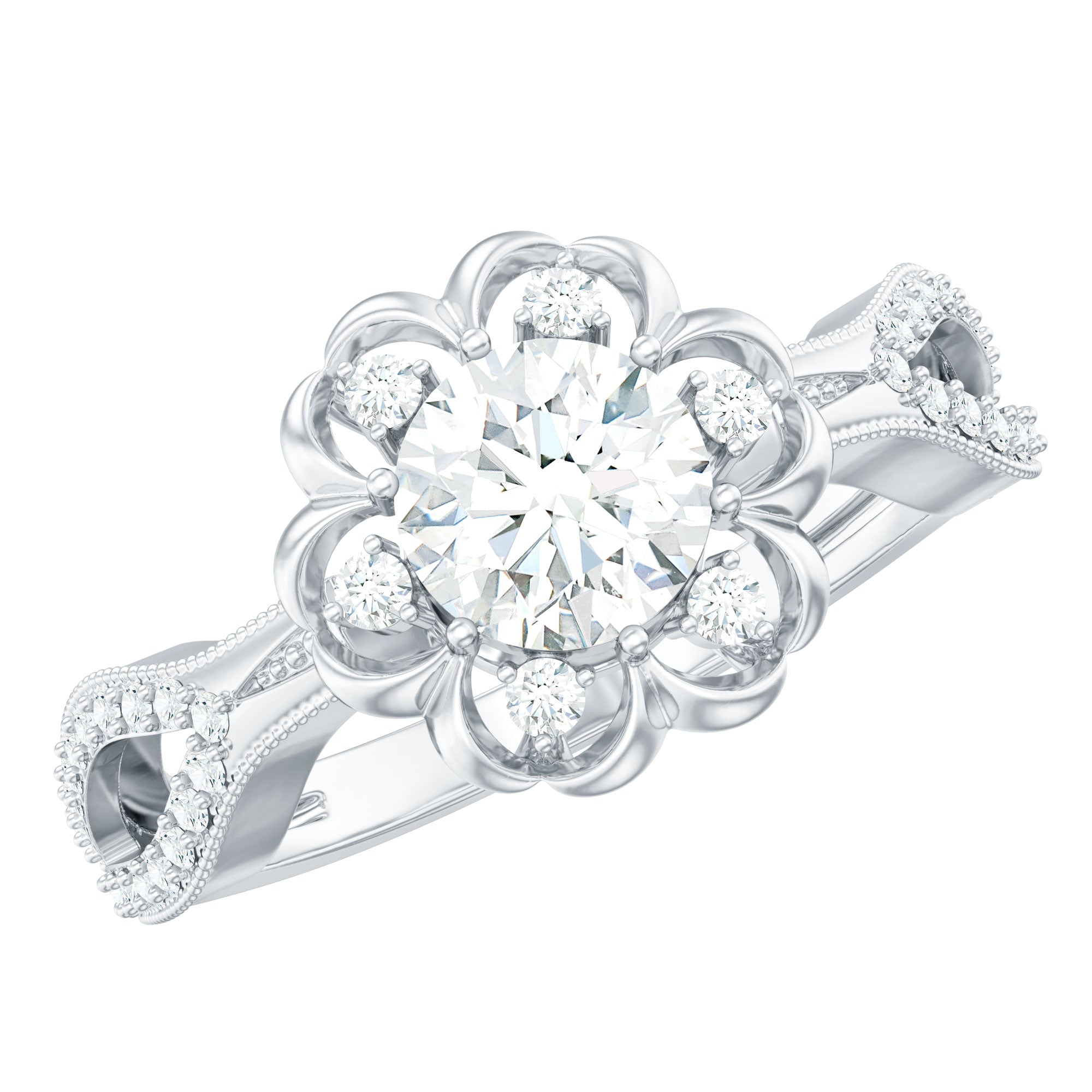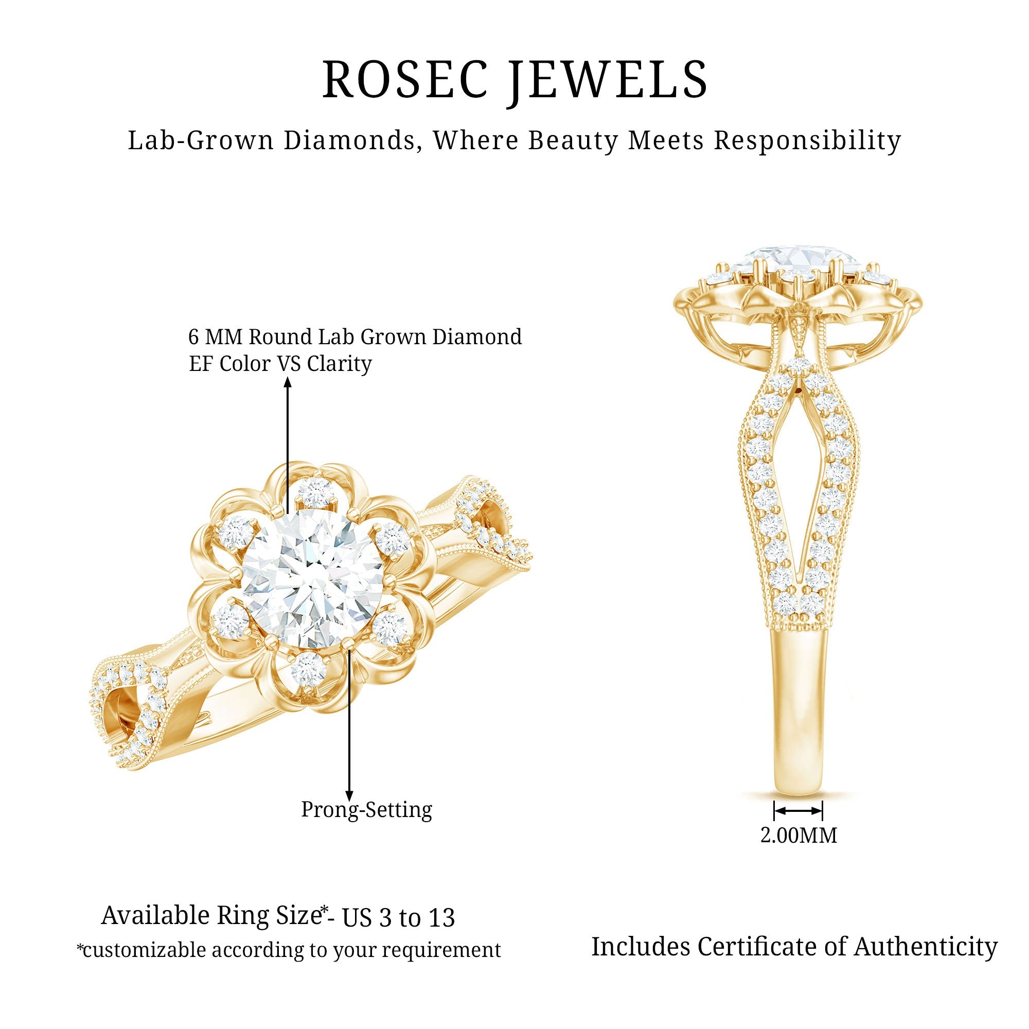 Bloom in everlasting love with this Floral Engagement Ring. Crafted with perfection, this Ring features 6mm Round Shape Lab Grown Diamond gemstones set in a flower motif, symbolizing a love that blossoms without compromise. Intricately designed, the Diamond Engagement Ring (Synthetic) captures the essence of blooming flowers, creating a timeless masterpiece. Ef-Vs Quality Diamond marks the commitment to sustainability which is reflected in every facet of this Lab Grown Diamond Ring.