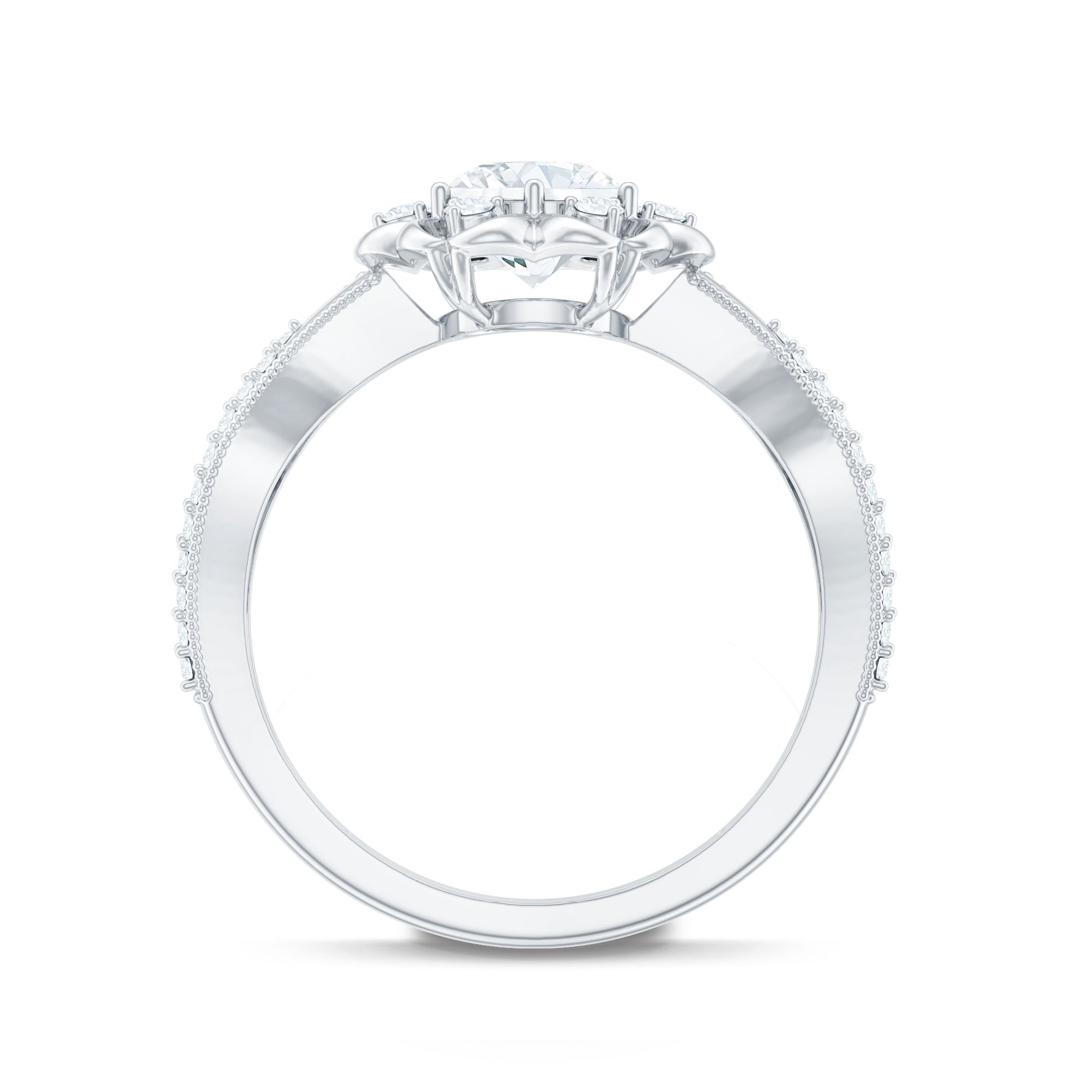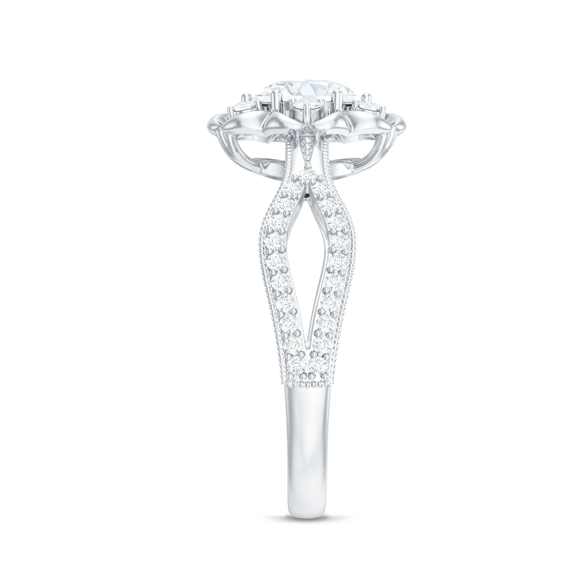 Nature Inspired Lab Grown Diamond Engagement Ring ‐ Lab - ( EF-VS ) / 18K White Gold