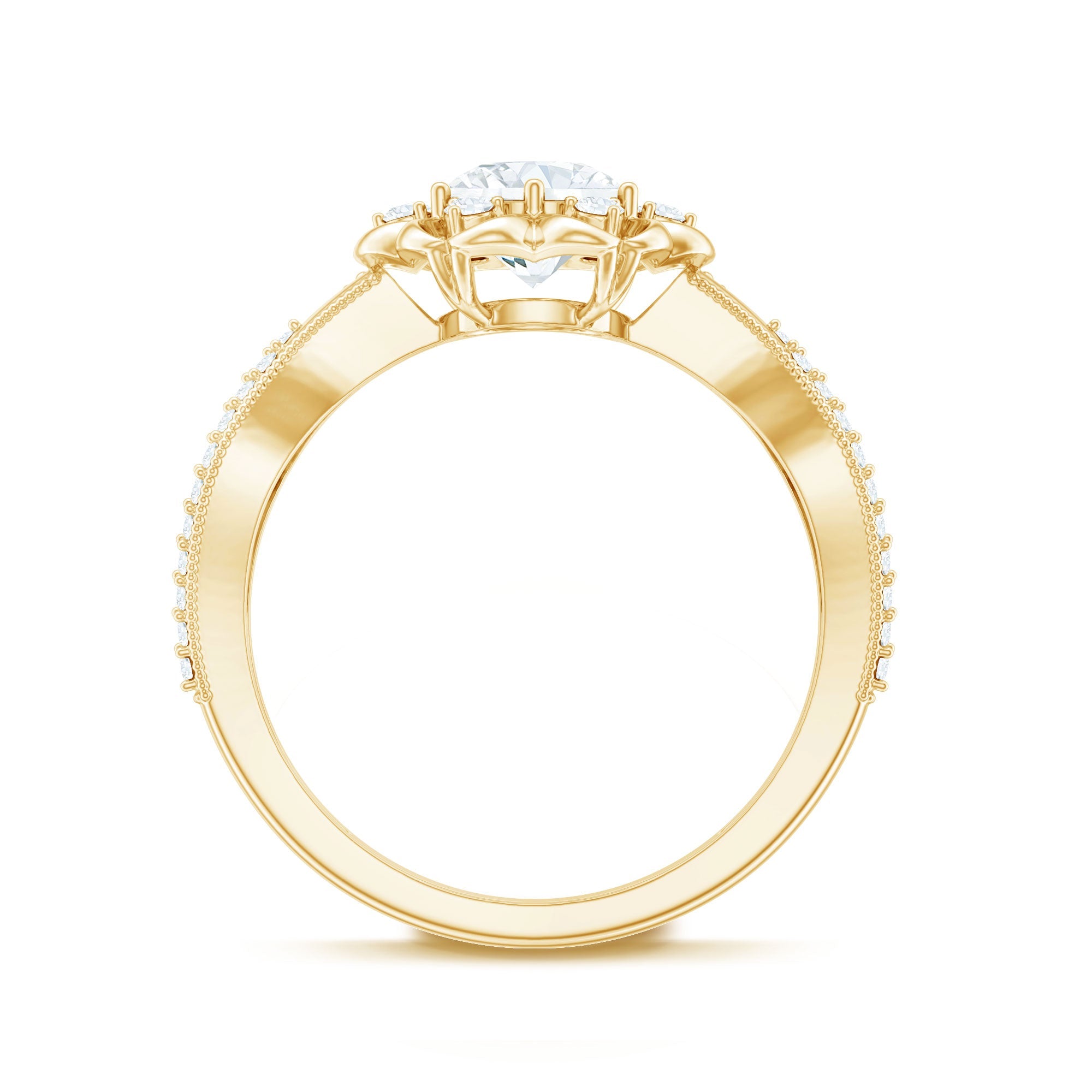 Nature Inspired Lab Grown Diamond Engagement Ring ‐ Lab - ( EF-VS ) / 14K Yellow Gold