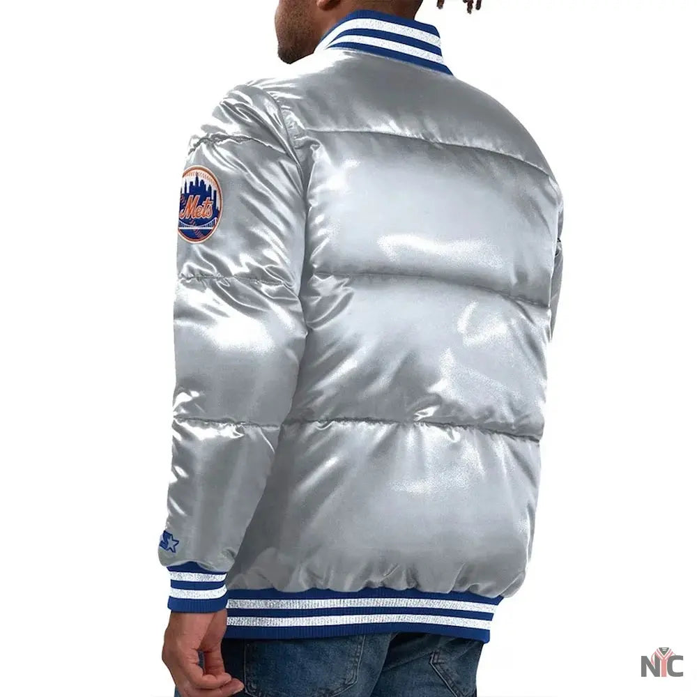 NY Mets Cooperstown Collection Bronx Puffer Satin Jacket ‐ Male / 4XL / Silver