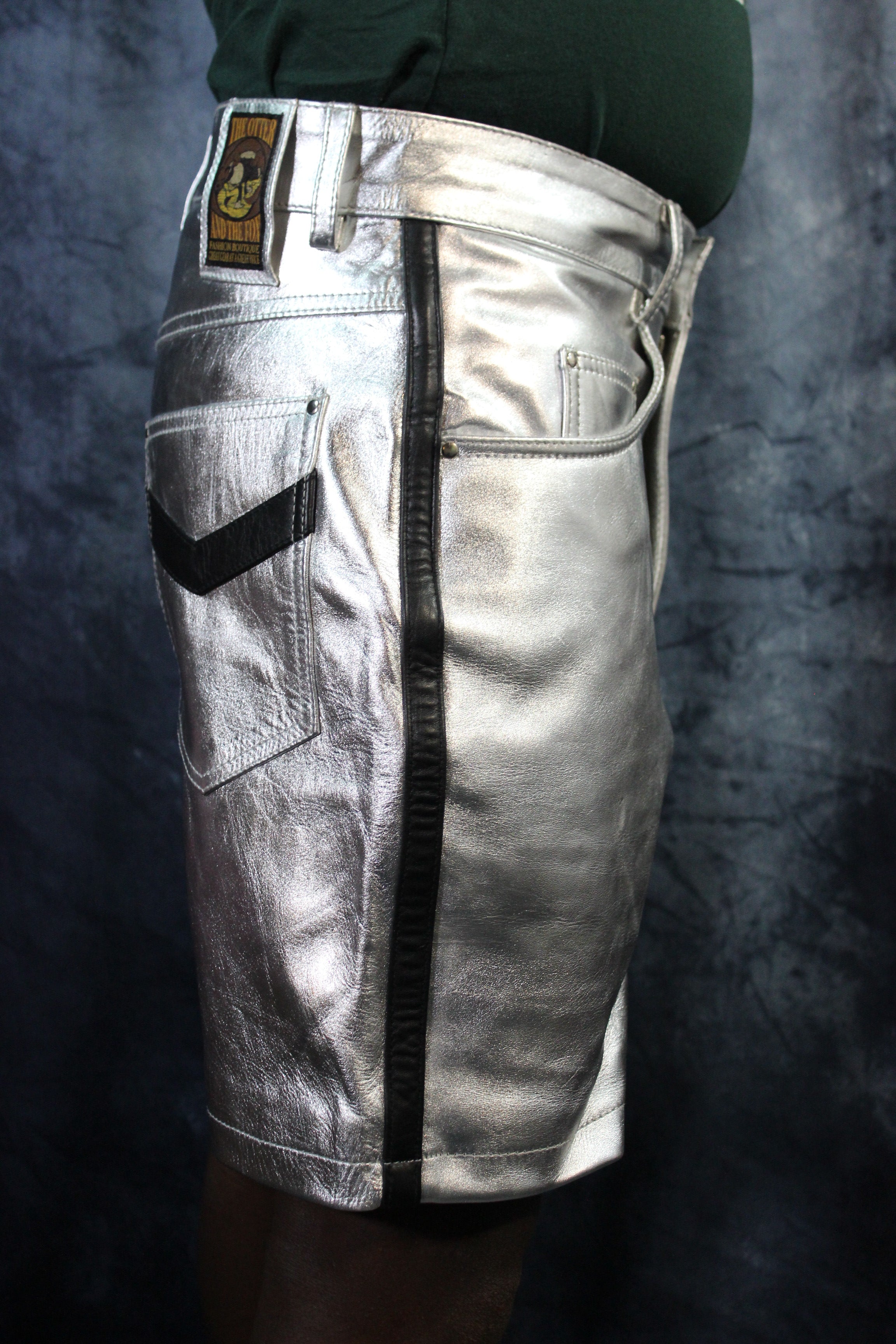 Leather is hot but keep cool while enjoying your love of leather with our new leather chevron shorts by The Otter and The Fox! These shorts are modeled after classic Jean shorts, with an extra 'chevron' highlight on the back pockets. These wonderfully crafted leather shorts come in a variety of colors and sizes to fit your desired look!