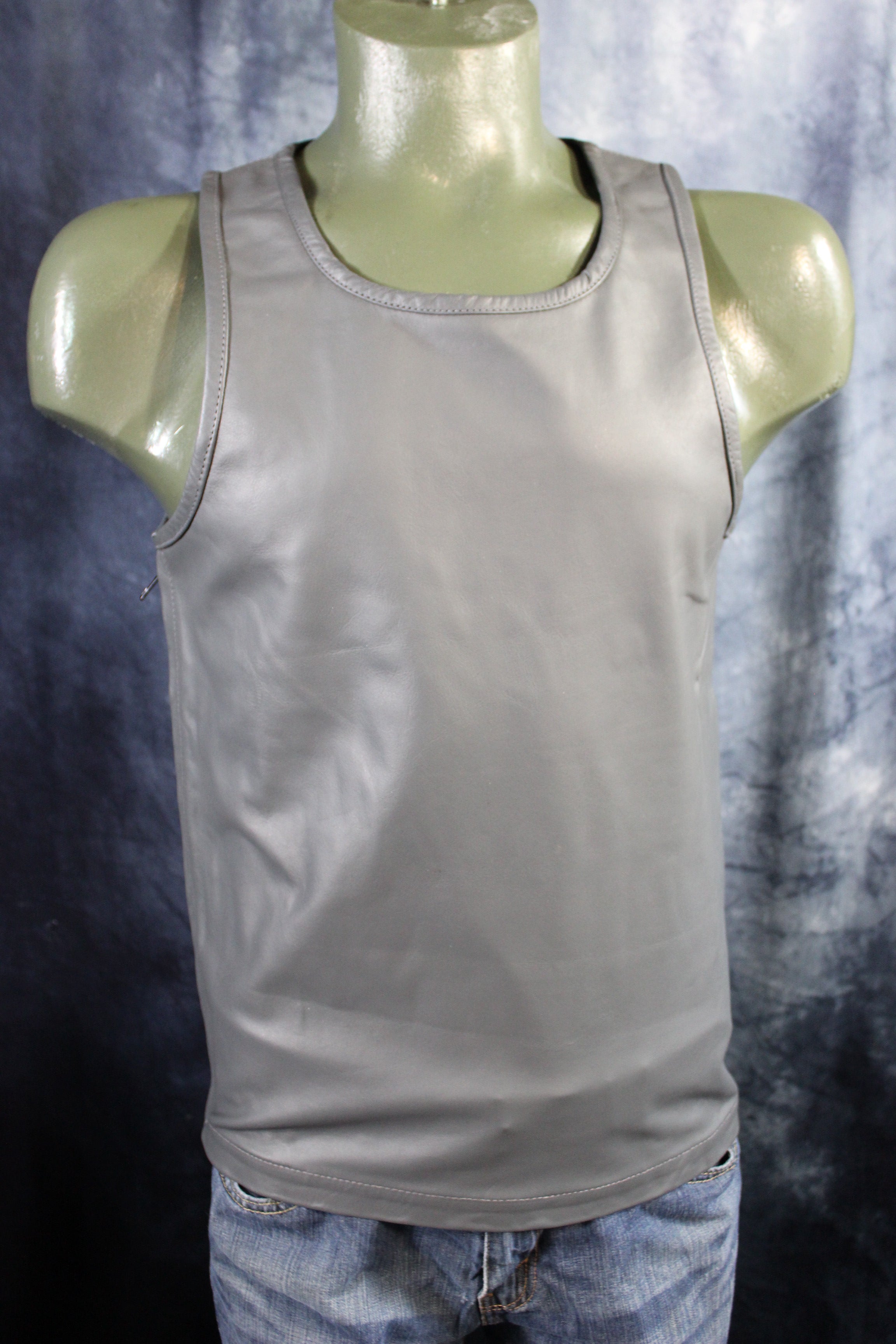 OnF Leather Tank Tops in Grey ‐ XX-Large