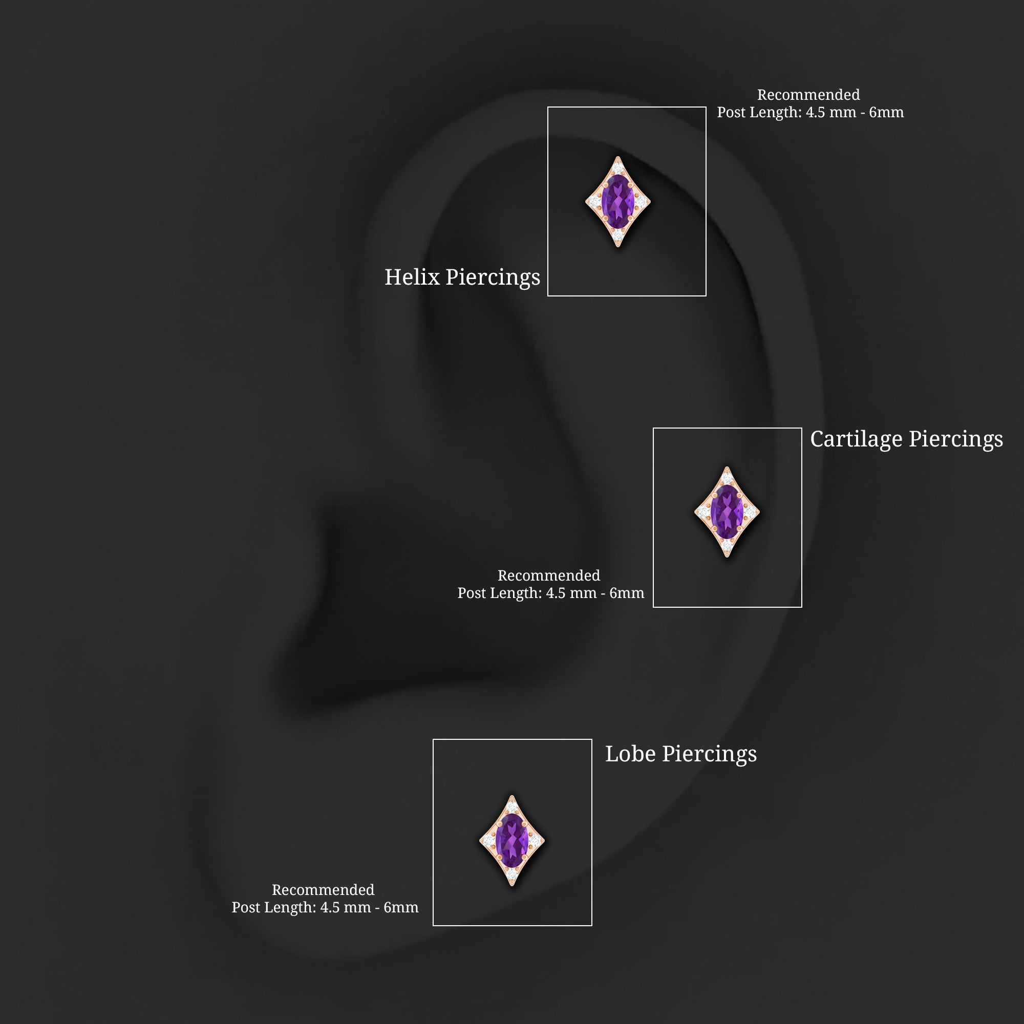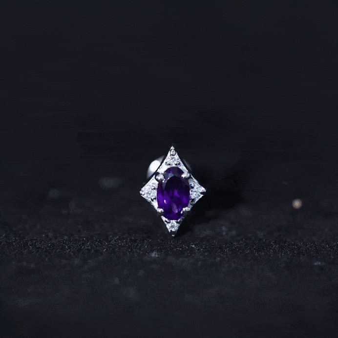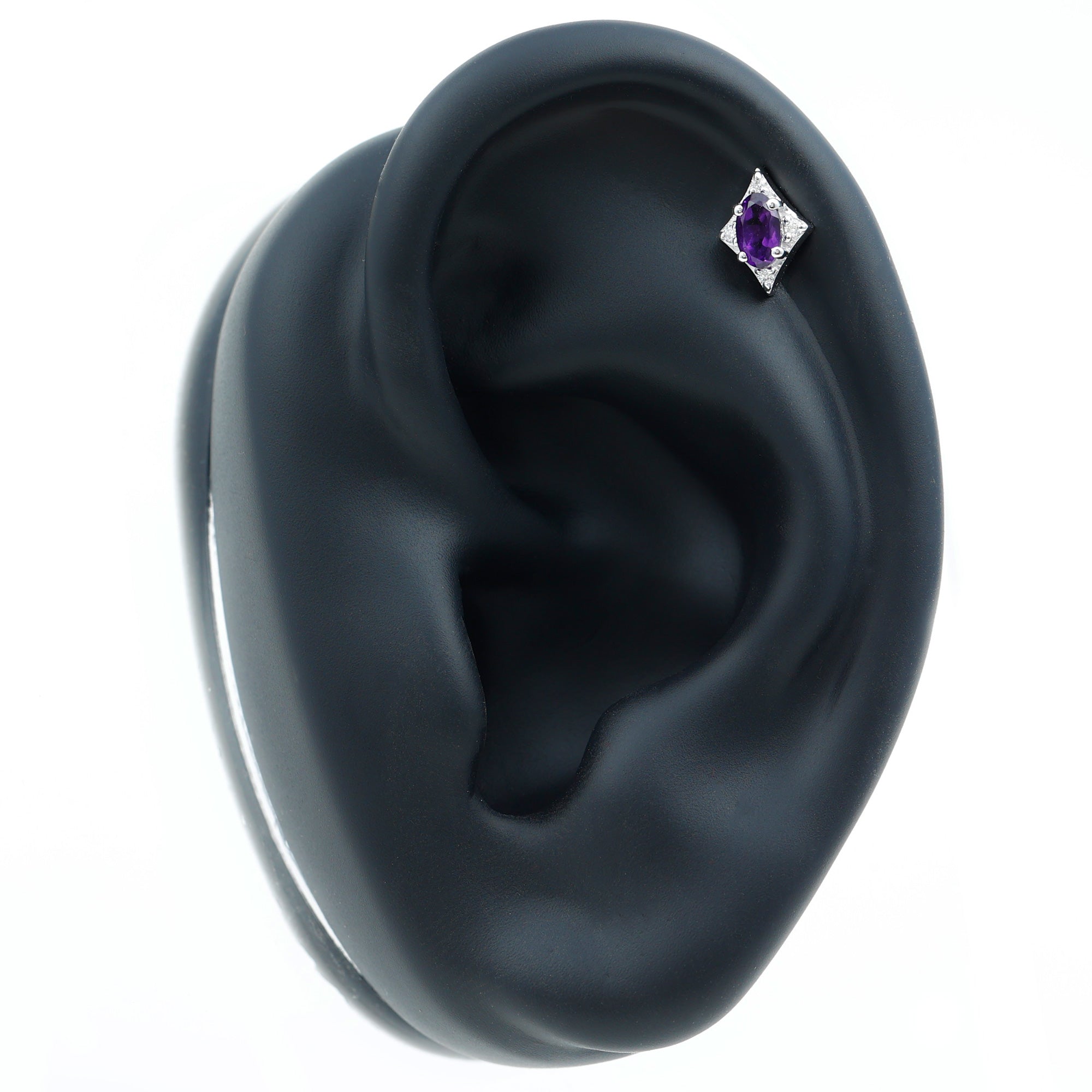 This Amethyst Kite Tragus Earring is embellished with Oval Cut Amethyst in Prong Setting, while Round Cut Moissanites studded on a kite design. You can wear this Amethyst Earring on your Helix, Cartilage, Tragus, or Upper Lobe Piercing.